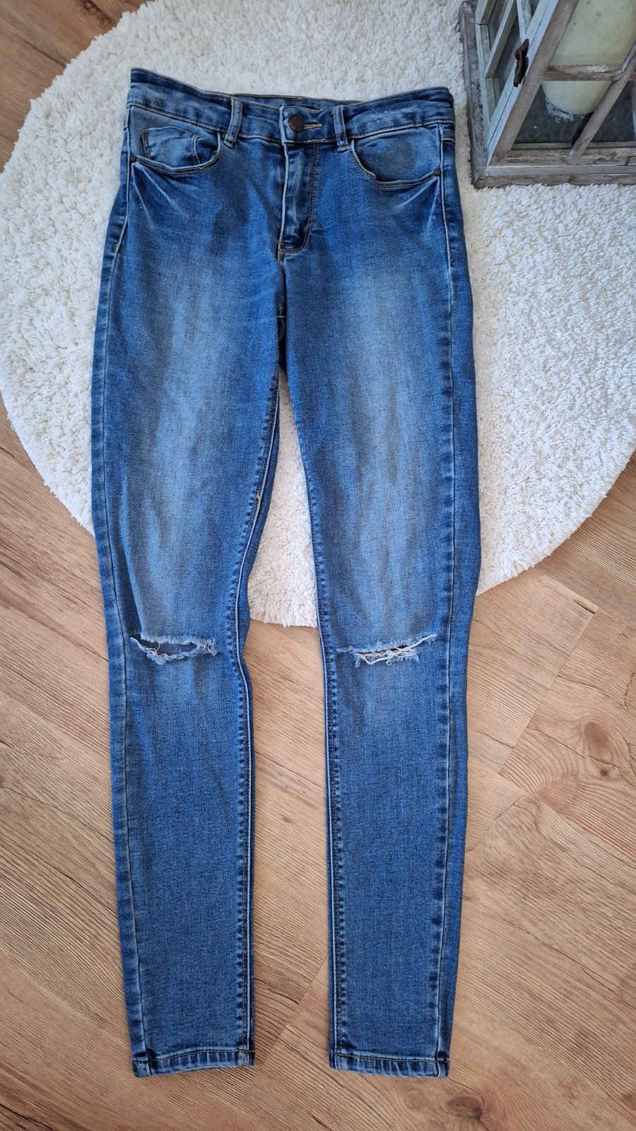 Predám vyskúšané dámske rifle tmavomodrej farby, veľkosť č. 34 (XS). Po bokoch a vzadu sú vačky. Slimkový strih. Nepoškodené, mierne elastické. Dĺžka vrátane patentu 94cm, od rozkroku 70cm. Šírka v...