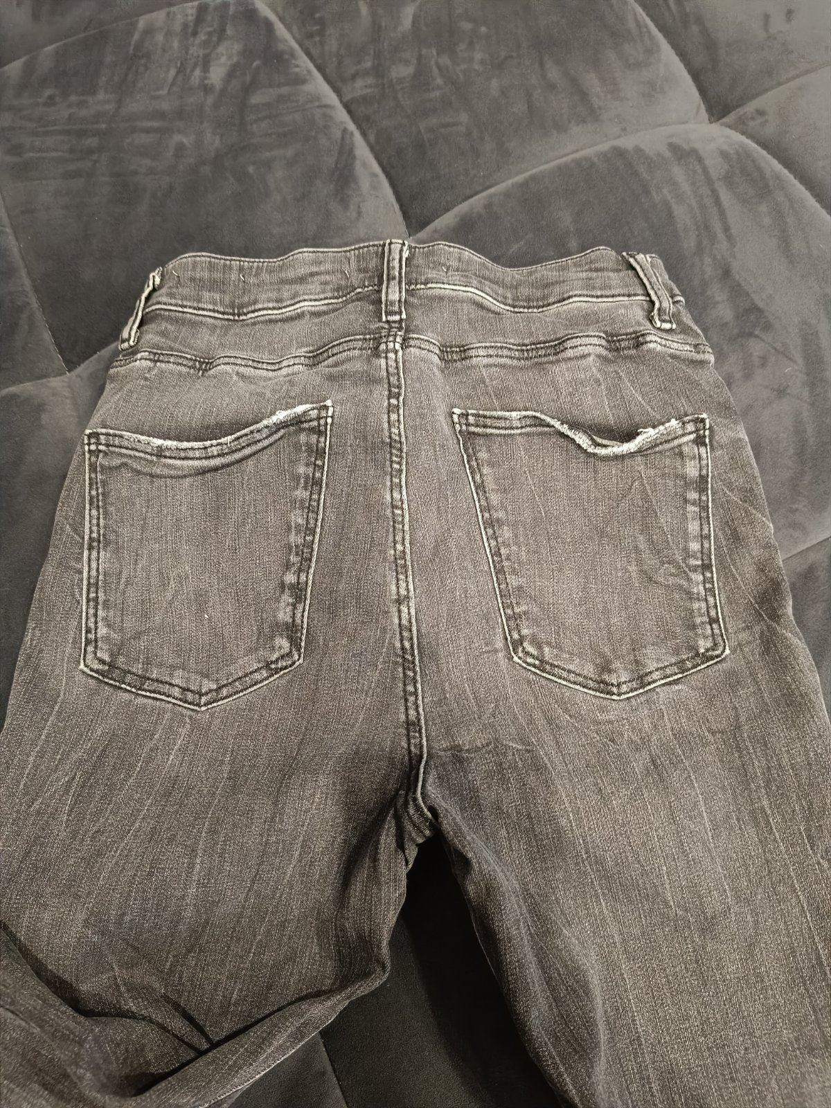 V dobrom stave. Zadné vrecká blízko seba opticky zužujú postavu. Mierne opotrebované. Štítok je odstrihnutý, zrejme M.