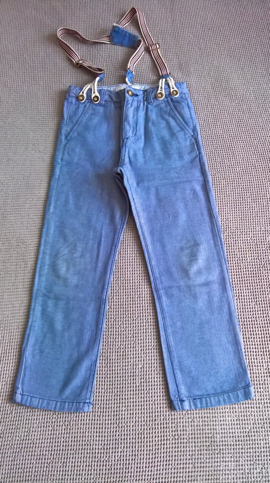 Štruktúrované nohavice s trakmi /traky som dala z iných rifiel, nakoľko originál traky mali aj časti koženky, ktorá sa začala šúpať/ v super stave.