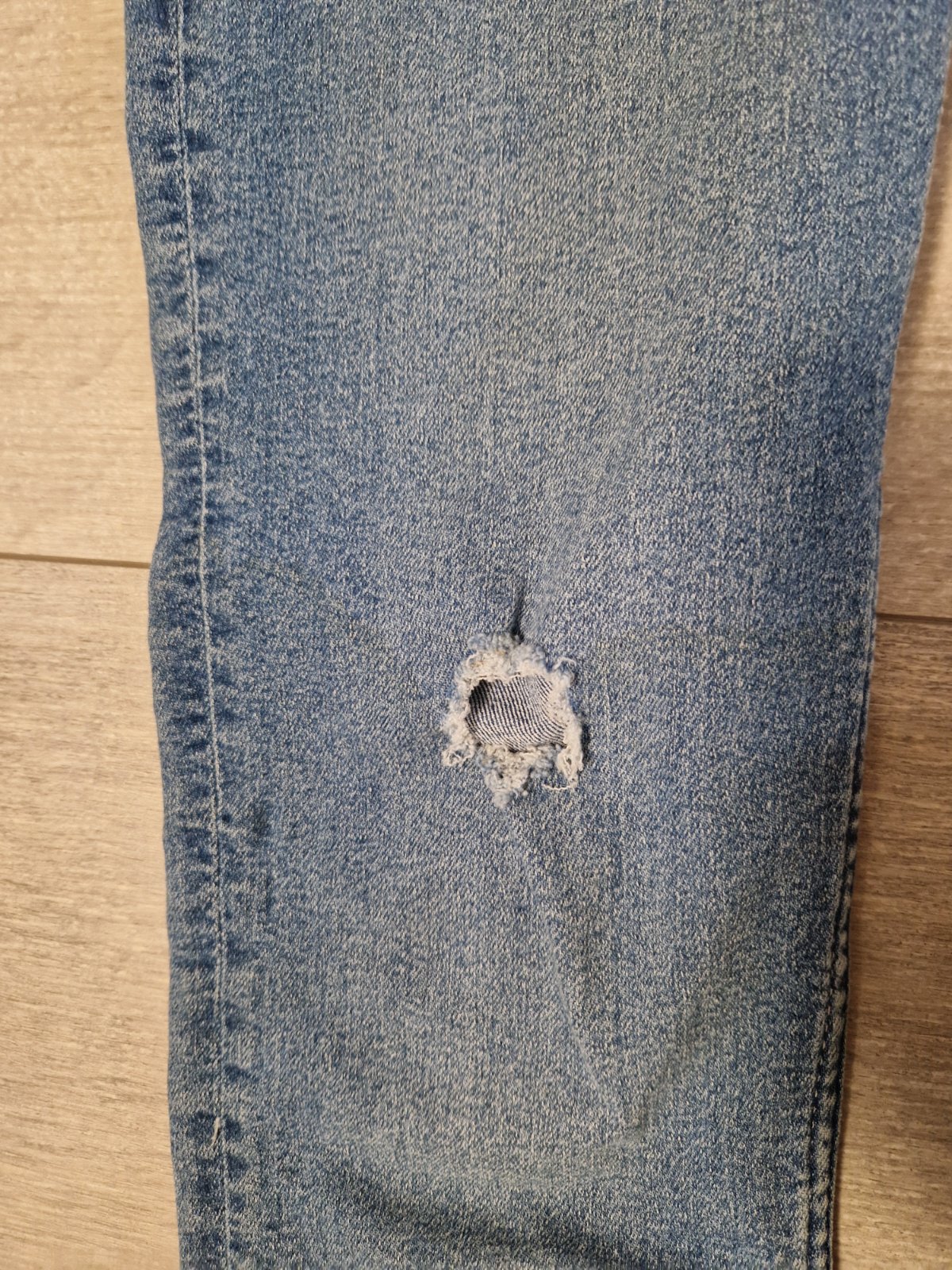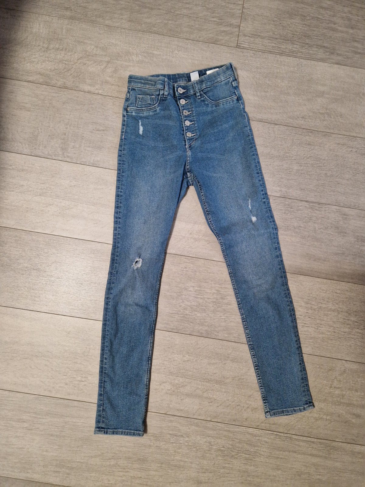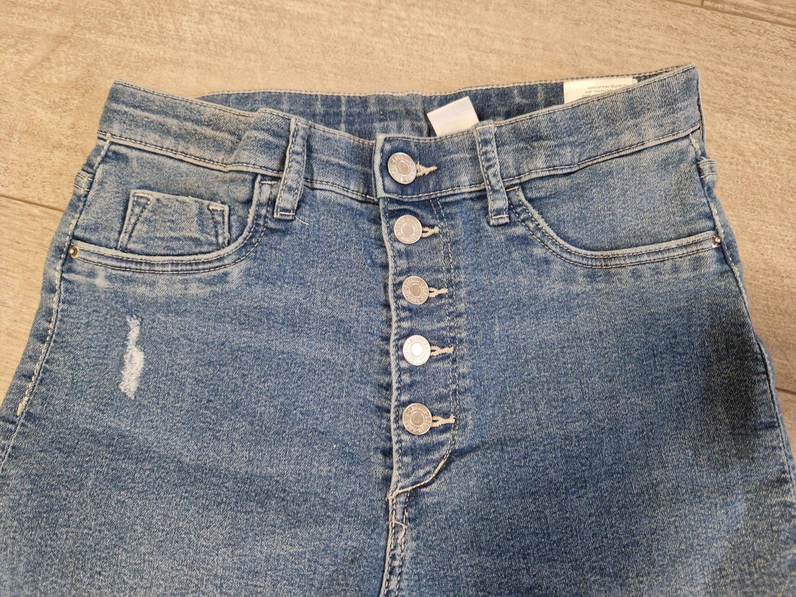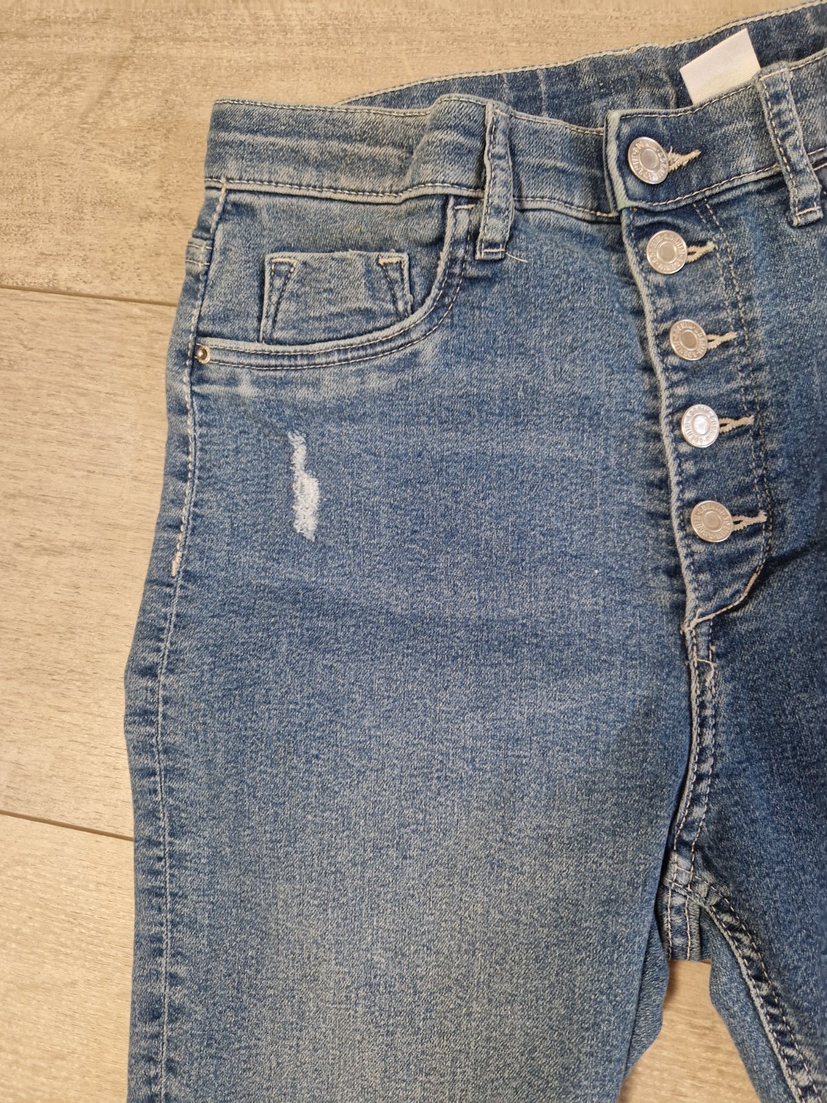 Pár krát oblečené. Stredne modré, pružné, v páse regulácia. Farba nie je taká tmavá ako na prvej foto. Skôr ako na poslednej no ešte trošku viac do nebíčkovej. Pás v kľude 32, dĺžka 96. PC 24,90