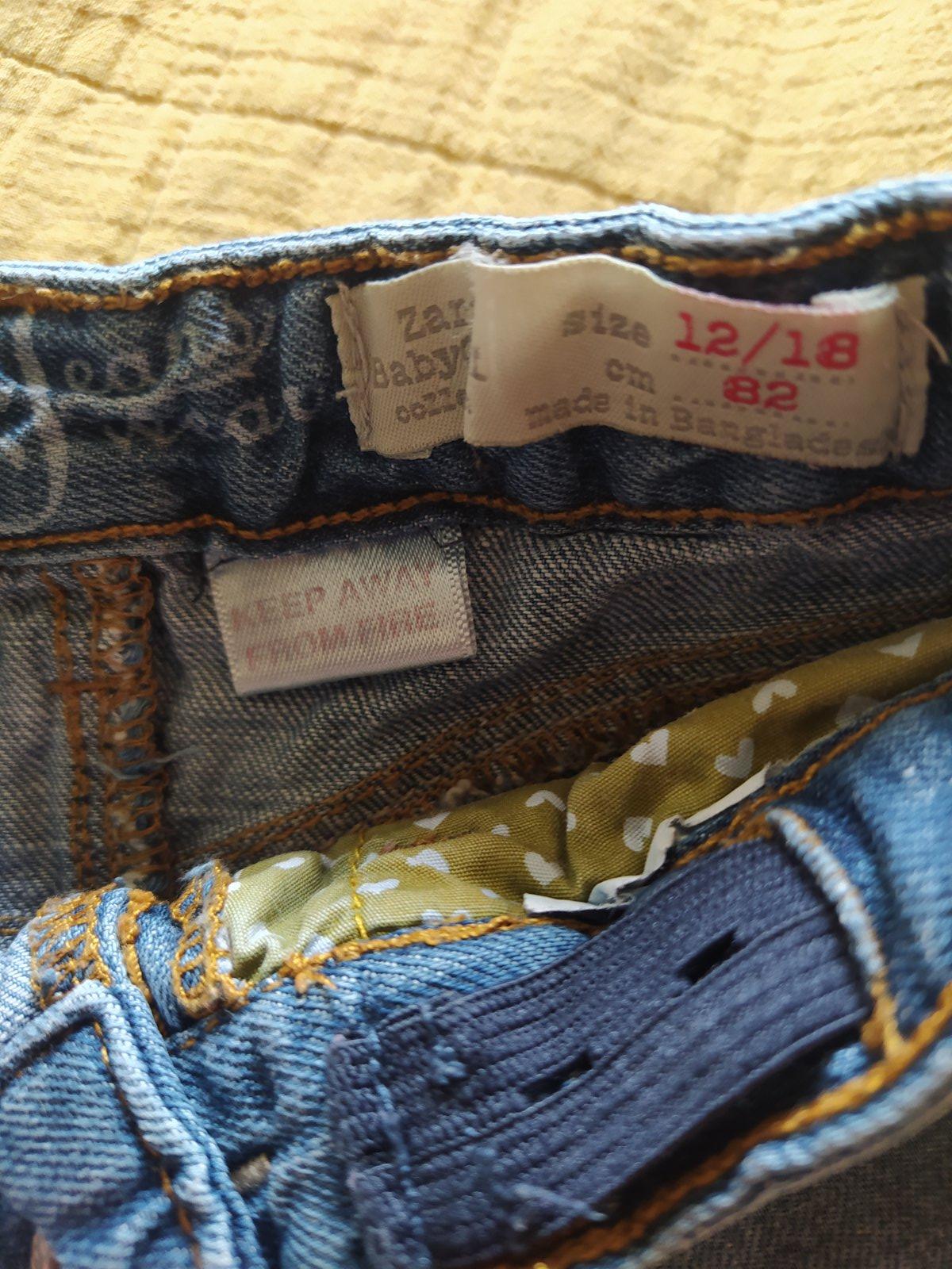 Predam rifle zn Zara. Velkost je na 12-18 mesiacov. Velmi prijemny material... tenka elasticka riflovina podsita trickovinou. V strede maju akoby natiahnutu latku. Vidiet na 3.fotke. Inak neposkodene.