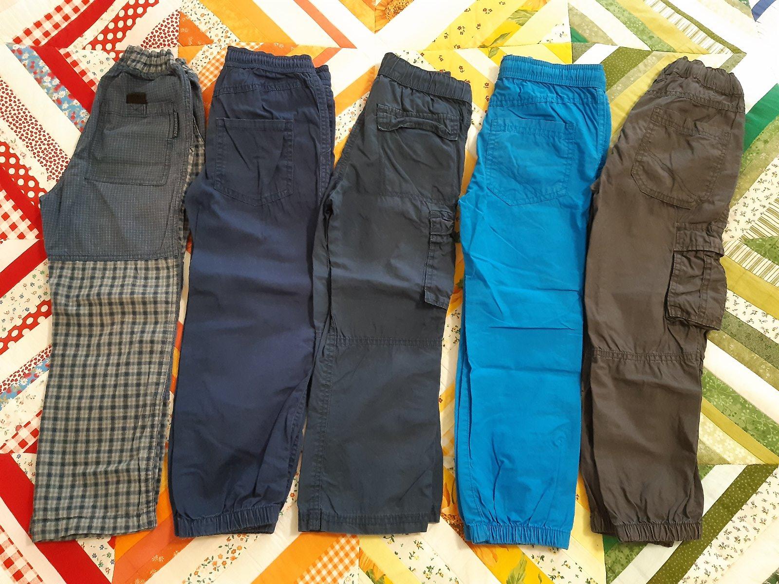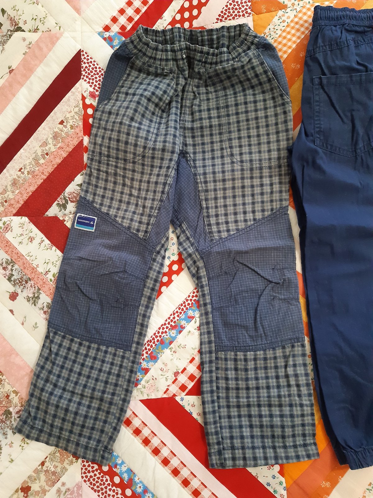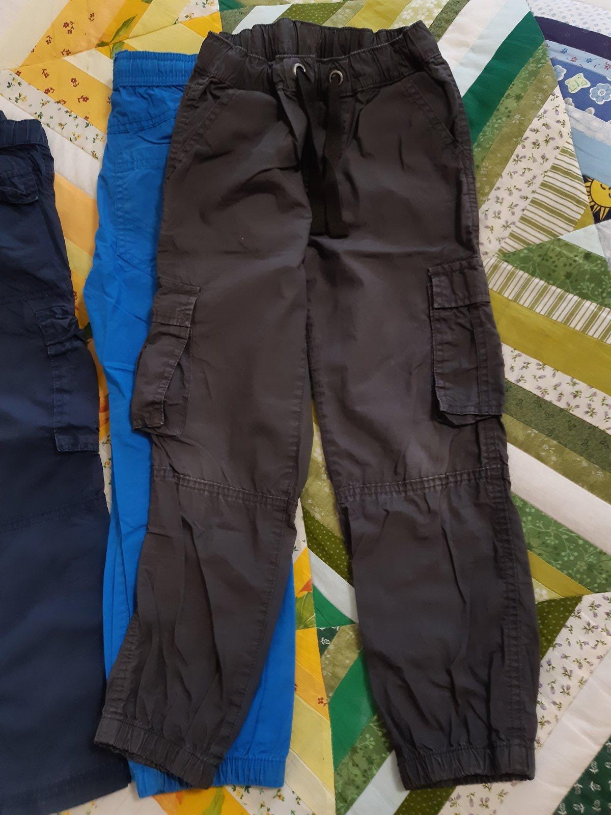Lahke letne nohavice, tenucky material. Idealne na prechod medzi dlhymi nahavicami a kratasmi. Vsetky vo velmi peknom stave. Iba na bledych je nebadany zeleny flak. Kolienka nie take blede ako na foto. Cena za kus.