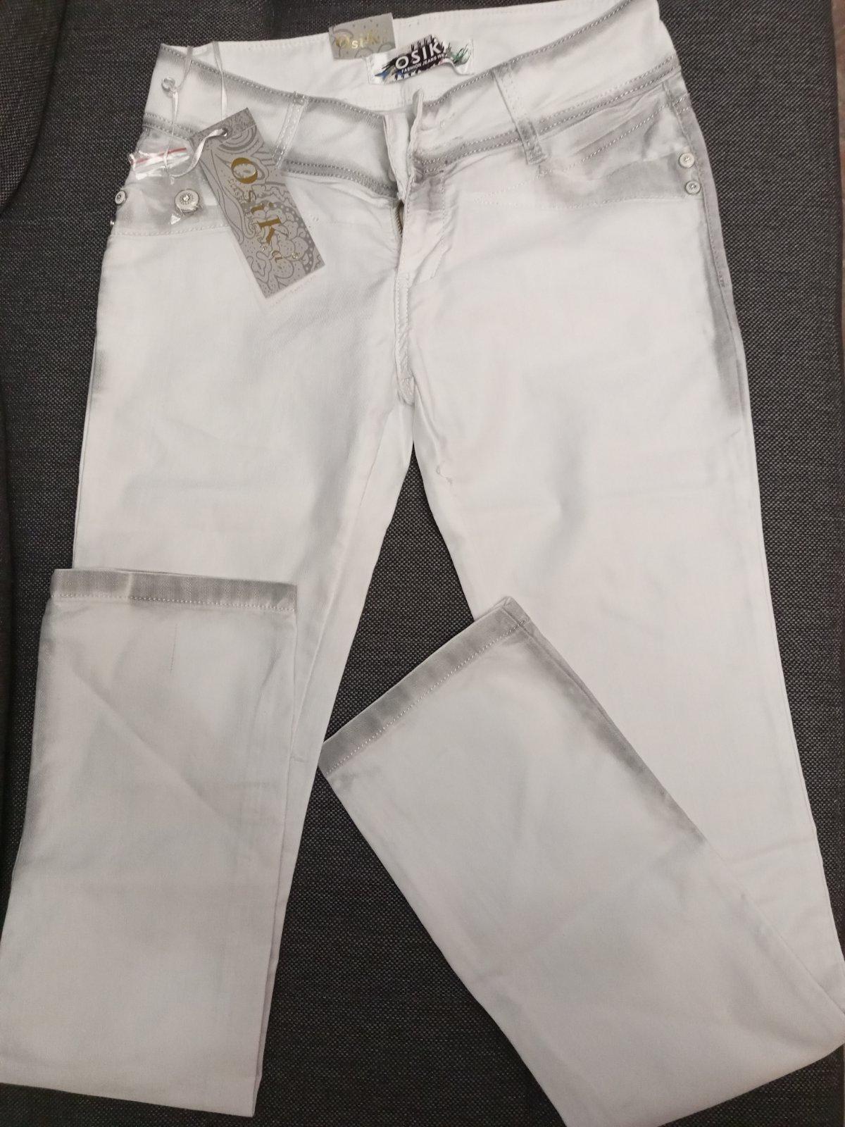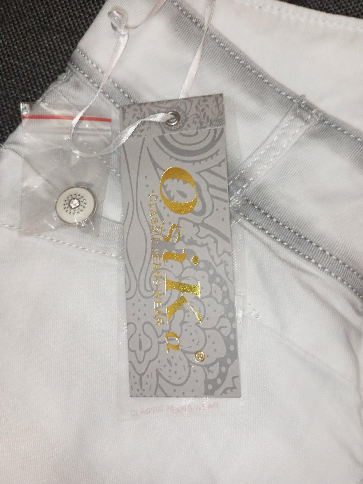 -biele rifle uzunkého strihu s efektným prešitím kolien,vysoko-elastické -veľkosť XS,pás 32-37 cm,sedy 22/30 cm,bočná d.89 cm,vnút.d.69 cm -veľkosť S,pás 35-40 cm,sedy 22/31 cm,bočná d.90 cm,vnút.d...