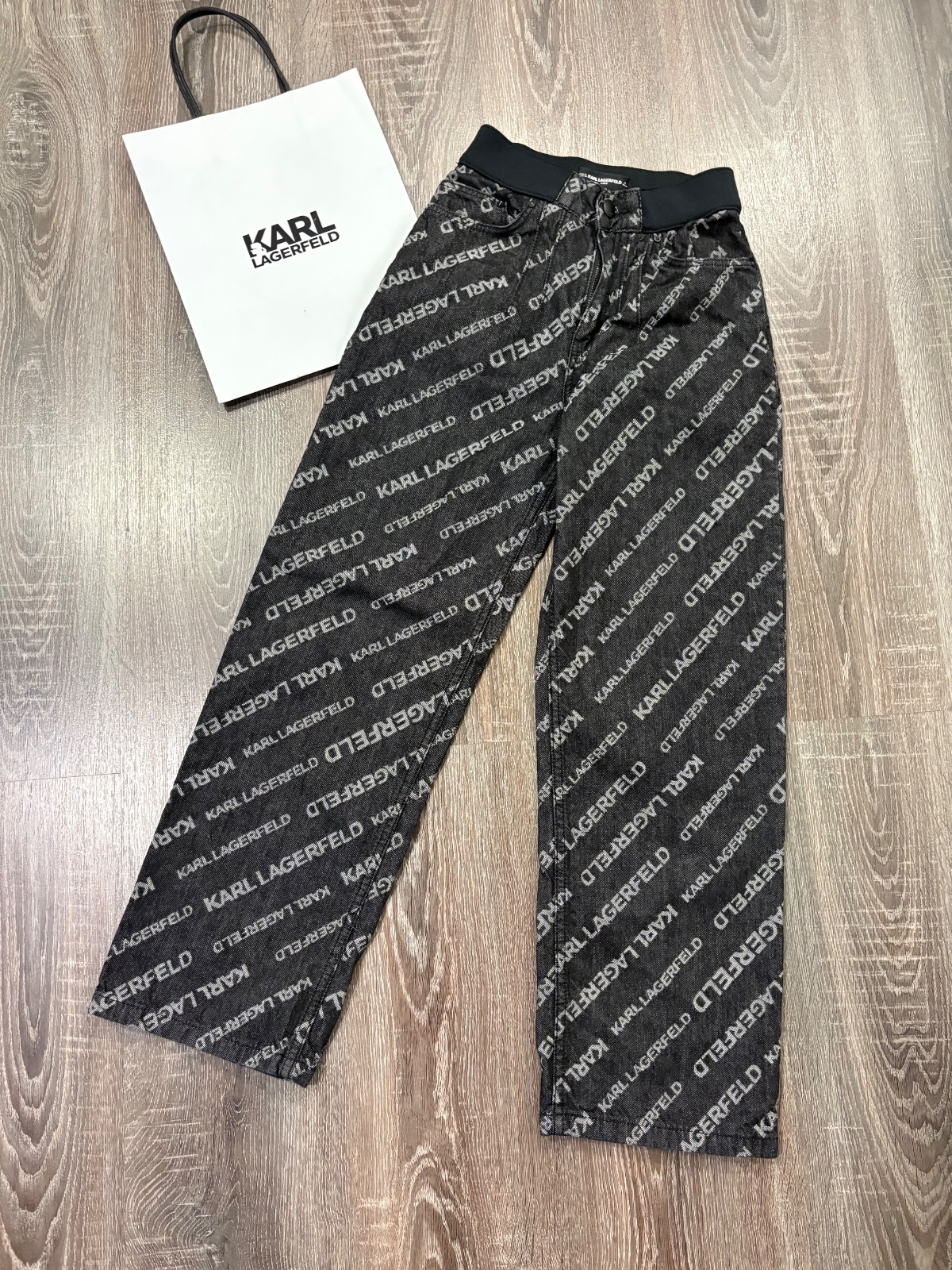 63.Karl Lagerfeld široke dievcenske rifle, ako nové, oblecene len raz