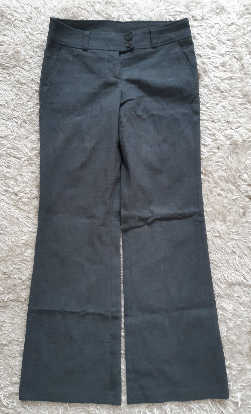 Sivočierne pruhovane pohodlne nohavice, riflovy strih, klasika zapinanie gombik a zips. Bez chyb