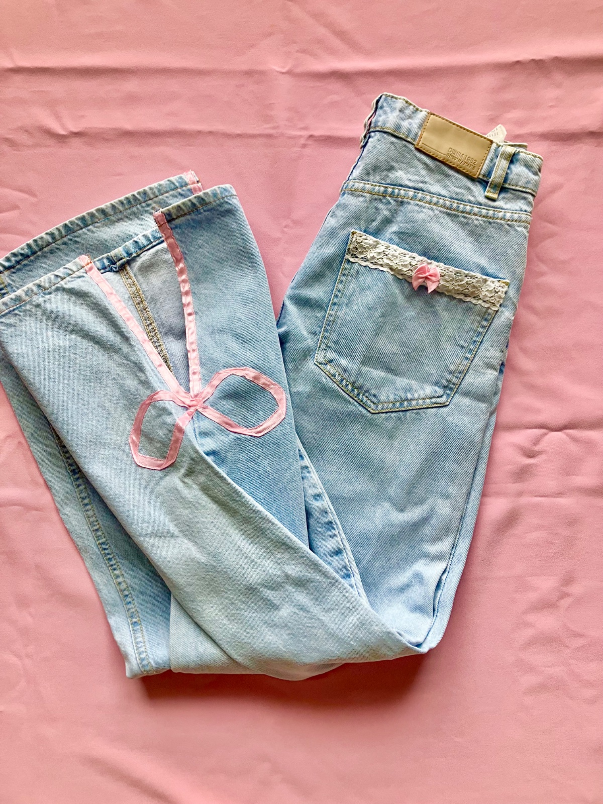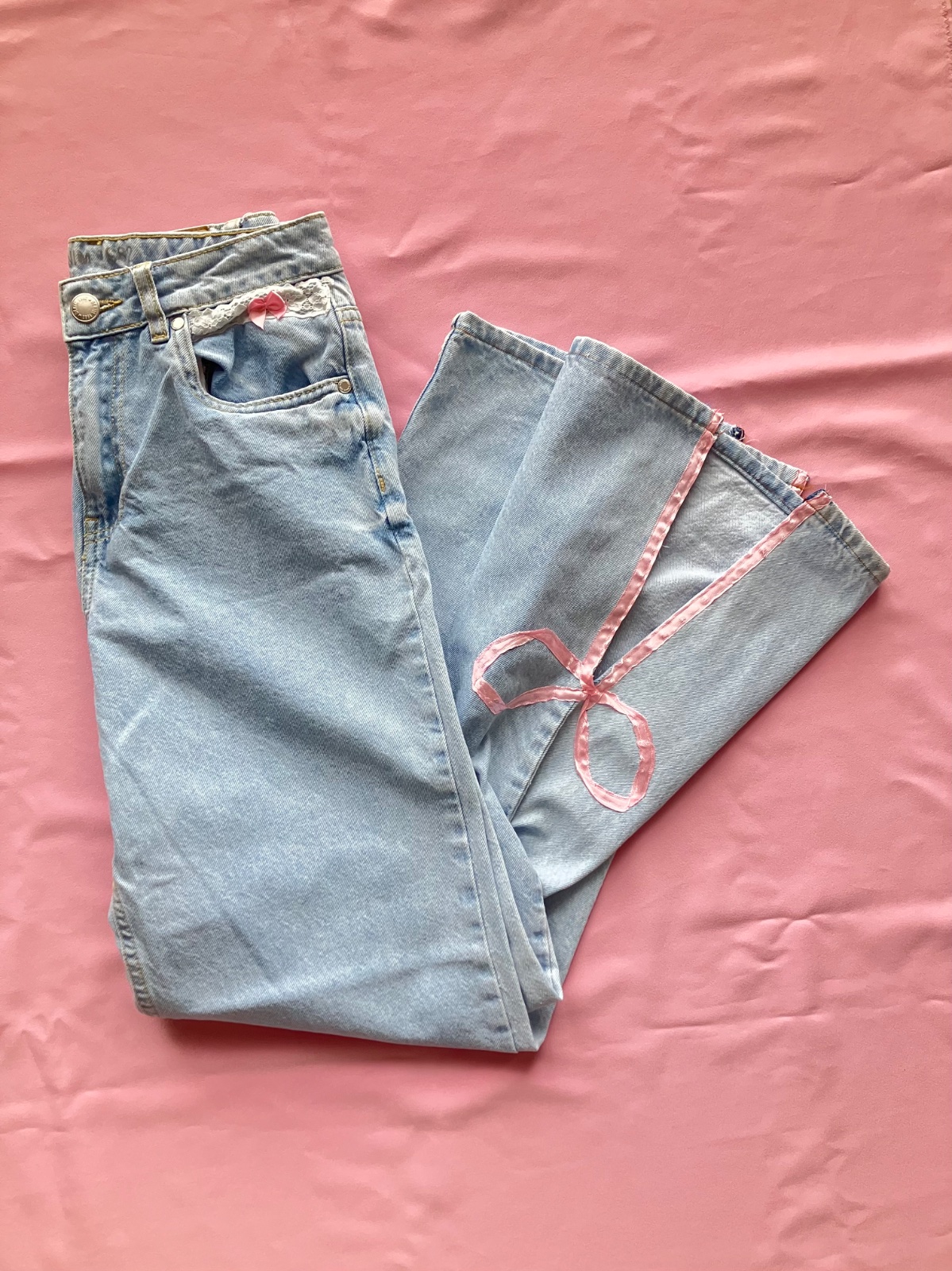 #coquette #upcycleddenim #lanadelrey #lolita #pinkbows #handmade #y2kfashion #vintagejeans #lacytrash