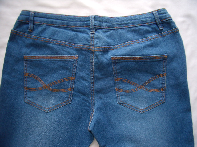Nové nenosené rifle, neviem si spomenúť, či som ich oprala. 82%bavlna, 17%polyester, 1%elastan - klasický 5vreckový strih - dl.97cm, od rozkroku 73cm, pás v kľude 2x 46cm, natiahnutý 2x 50-51cm, PS 24cm, ZS 38cm. (488g) A