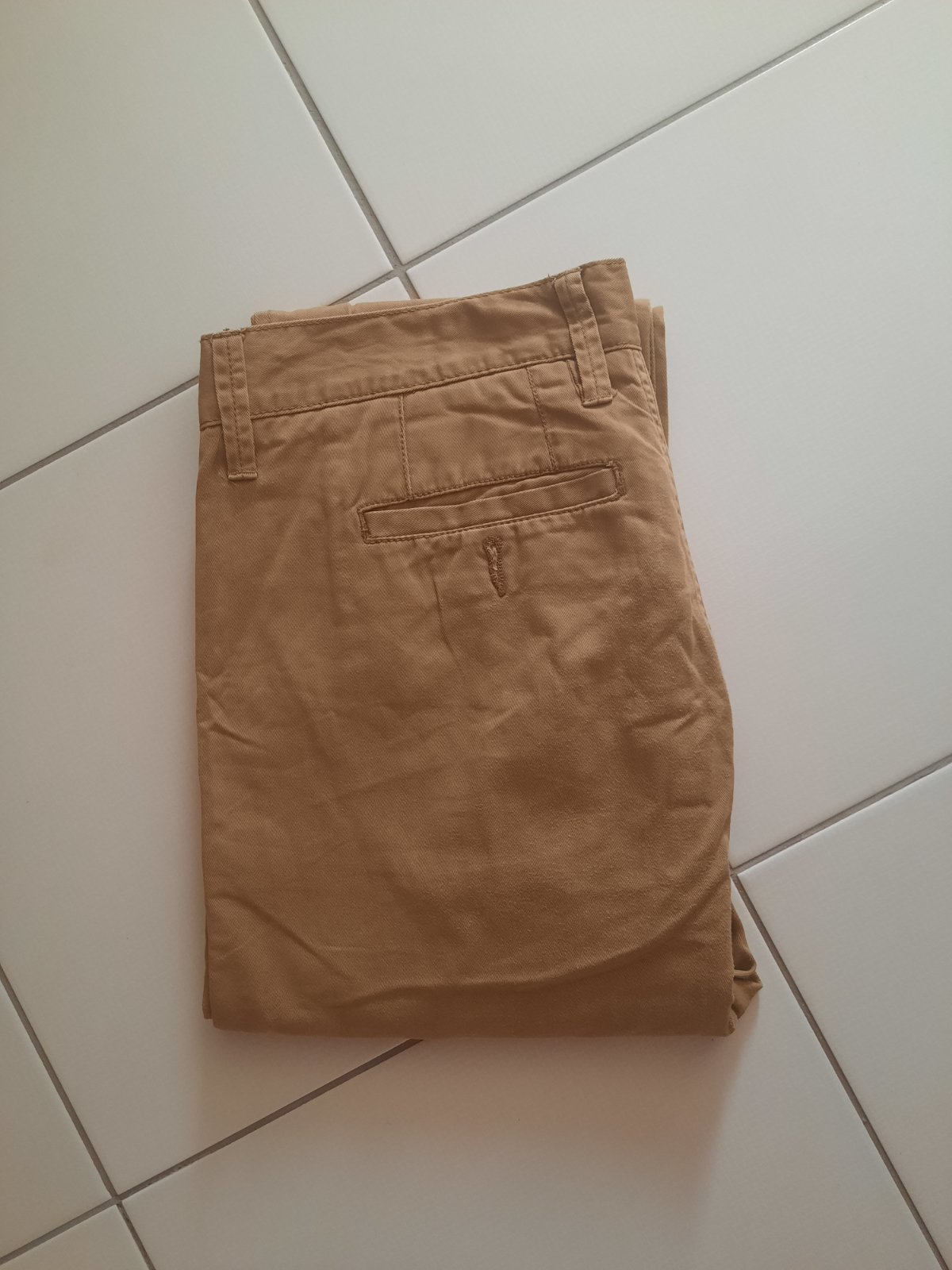 Nohavice vo vynikajúcom stave. Nosené iba príležitostne. Zloženie: 95 % bavlna, 5 % elastan. Rozmery: pás cca. 2 x 40 cm, dĺžka vonkajšia 96 cm, dĺžka vnútorná 73 cm.