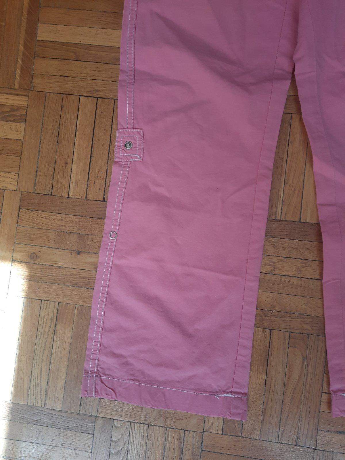 Veľmi pekné bavlnené tenké, vzdušné nohavice 2v1- sára sa dá pripnúť a budú 3/4 dĺžky. Pás sa dá reguľovať gumou. Vpredu sú 2 vačky.