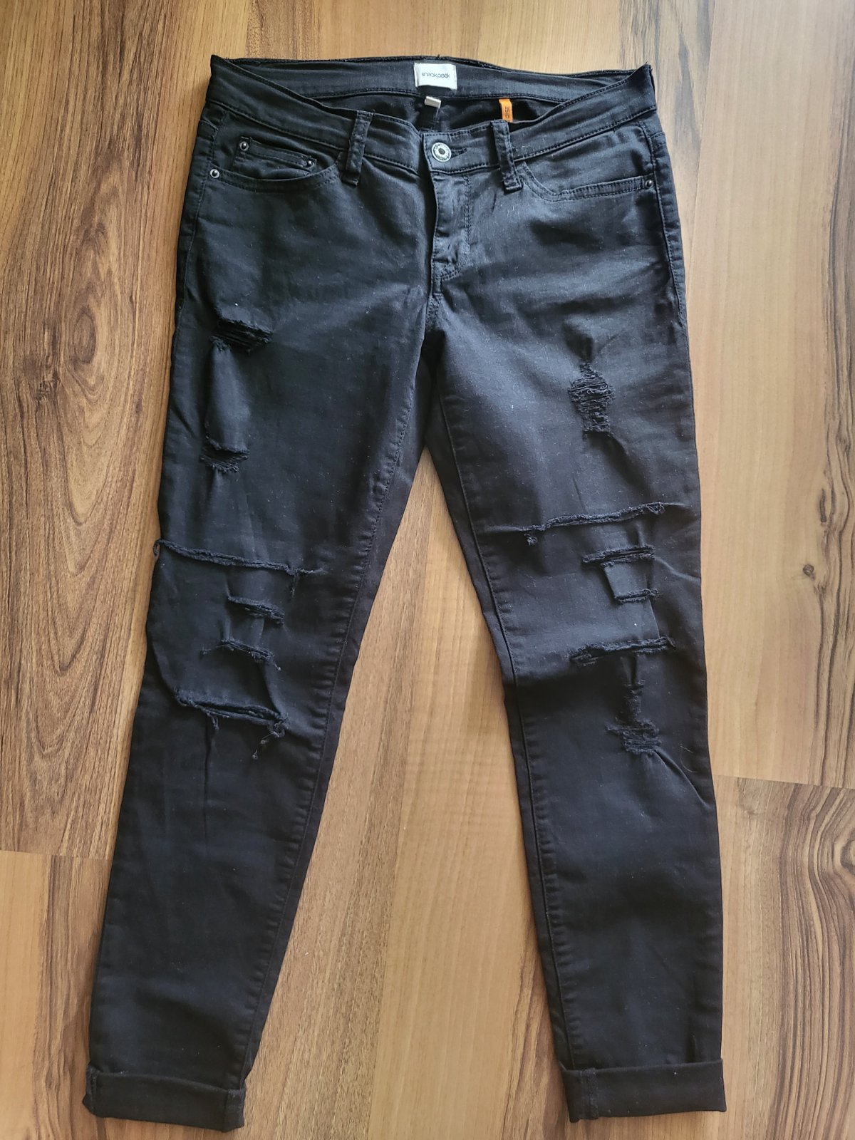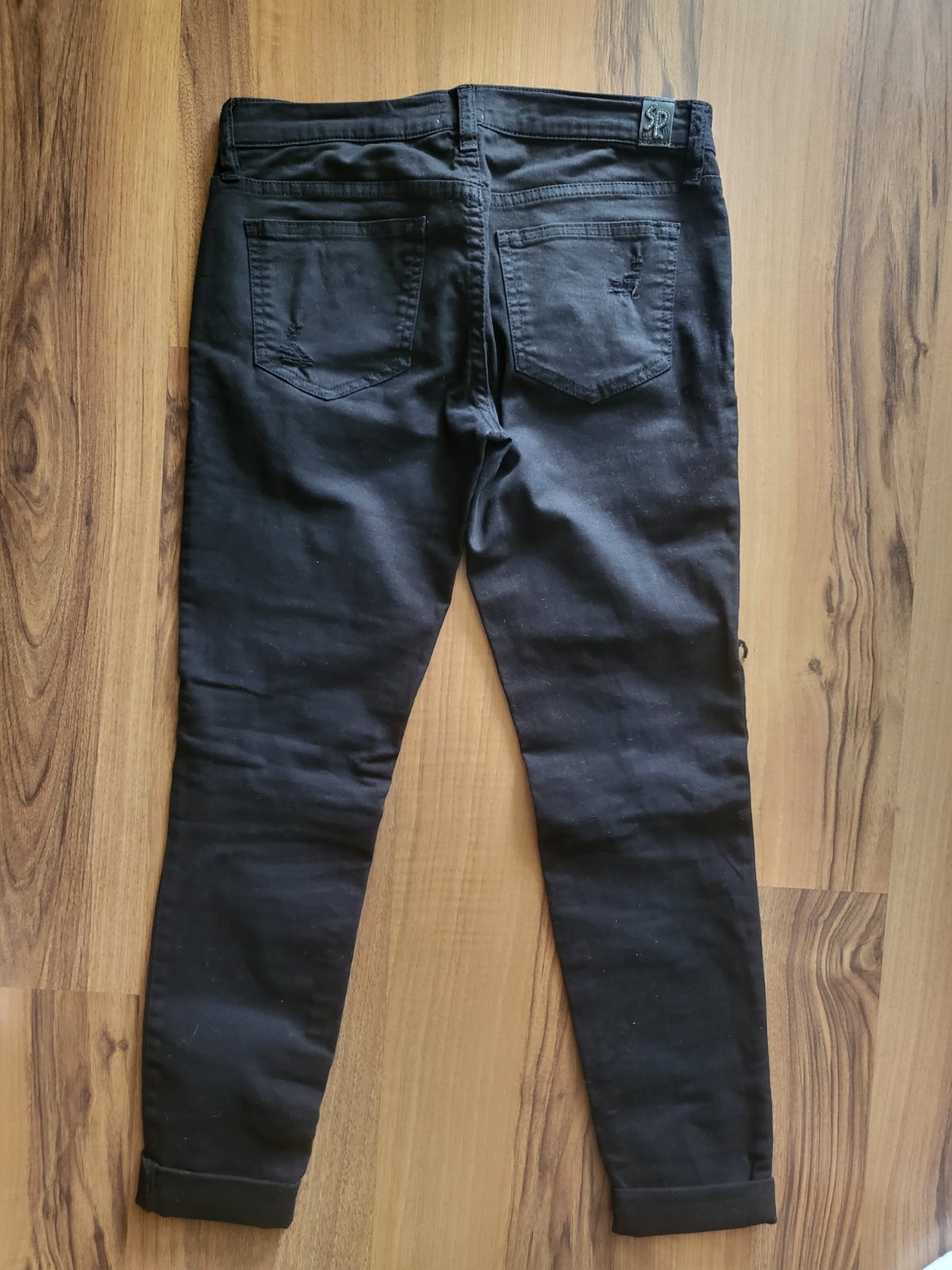 Rifle z nižšími pásom v perfektnom stave, nenosené len skladovane, diery originál od výroby, tenšia riflovina, elastické. Dĺžka 92,5cm, pás 2×39vm, predný sed 19cm, zadný 32cm