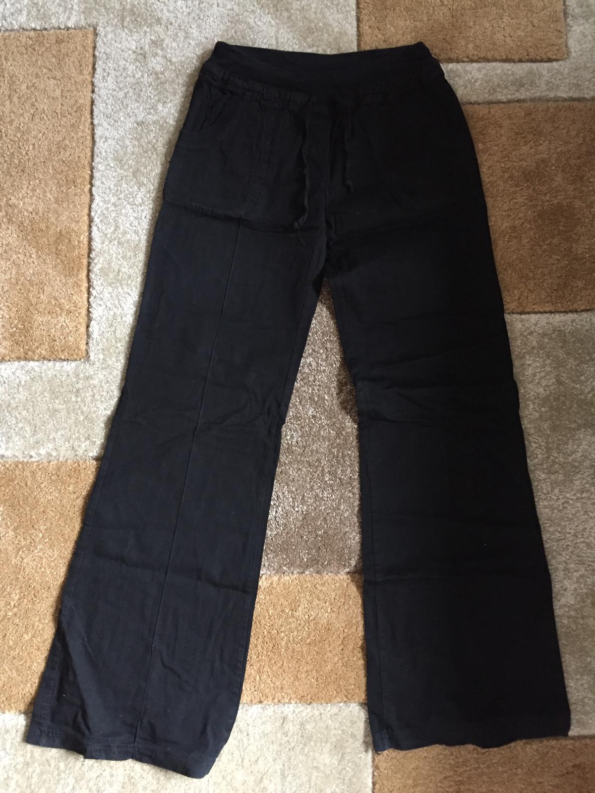 Ako nove, prijemny material, nie tak teplakovy ako taky chladivy. Dlzka: 100cm, dlzka vnut. nohavice: 75cm, pas: 34cm, boky: 47cm.