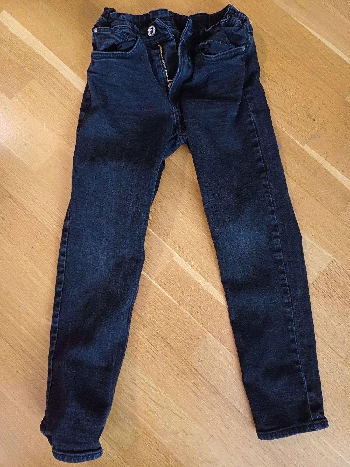 Nosené, ale sú v dobrom stave. Pravé kolienko trochu vyšúchané, ale minimálne. Vhodné do školy. Hrubšia rifľovina. V páse gumička na regulovanie. Rada premeriam. Cena je bez poštovného