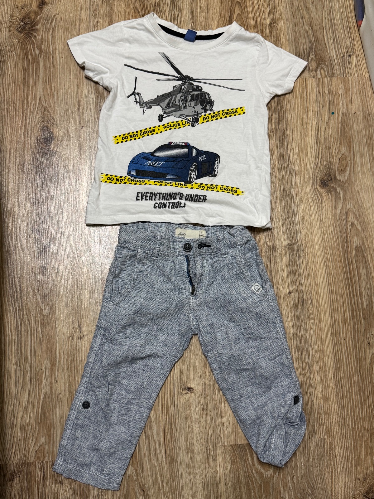 V top stave. Materiál pevný hrubší mencester. Vek 1 a pol-2r. Regulovateľný pás.