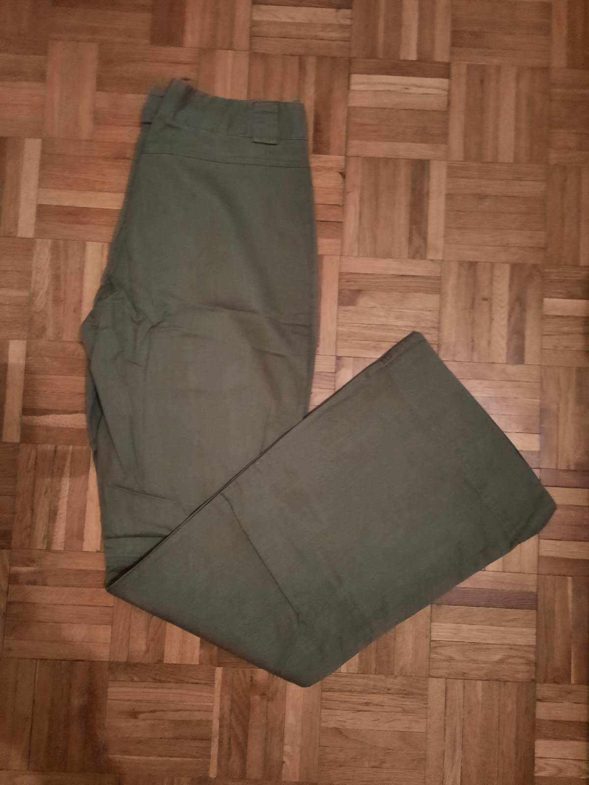 predam perfektne nohavice.Material bavlna. Malicka vada na vnutornom pase.jemne prestrihnute. Bola tam velmi stihnuta guma,ze by to tlacilo aj xs,tak som ju vybrala. Nie je to vidiet a lahko sa to ...