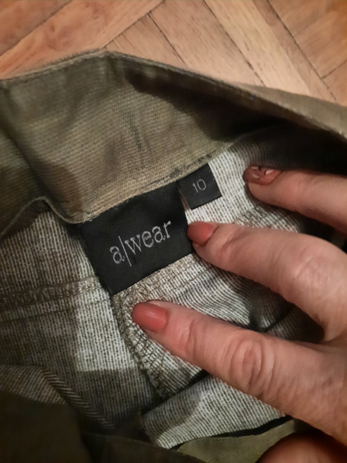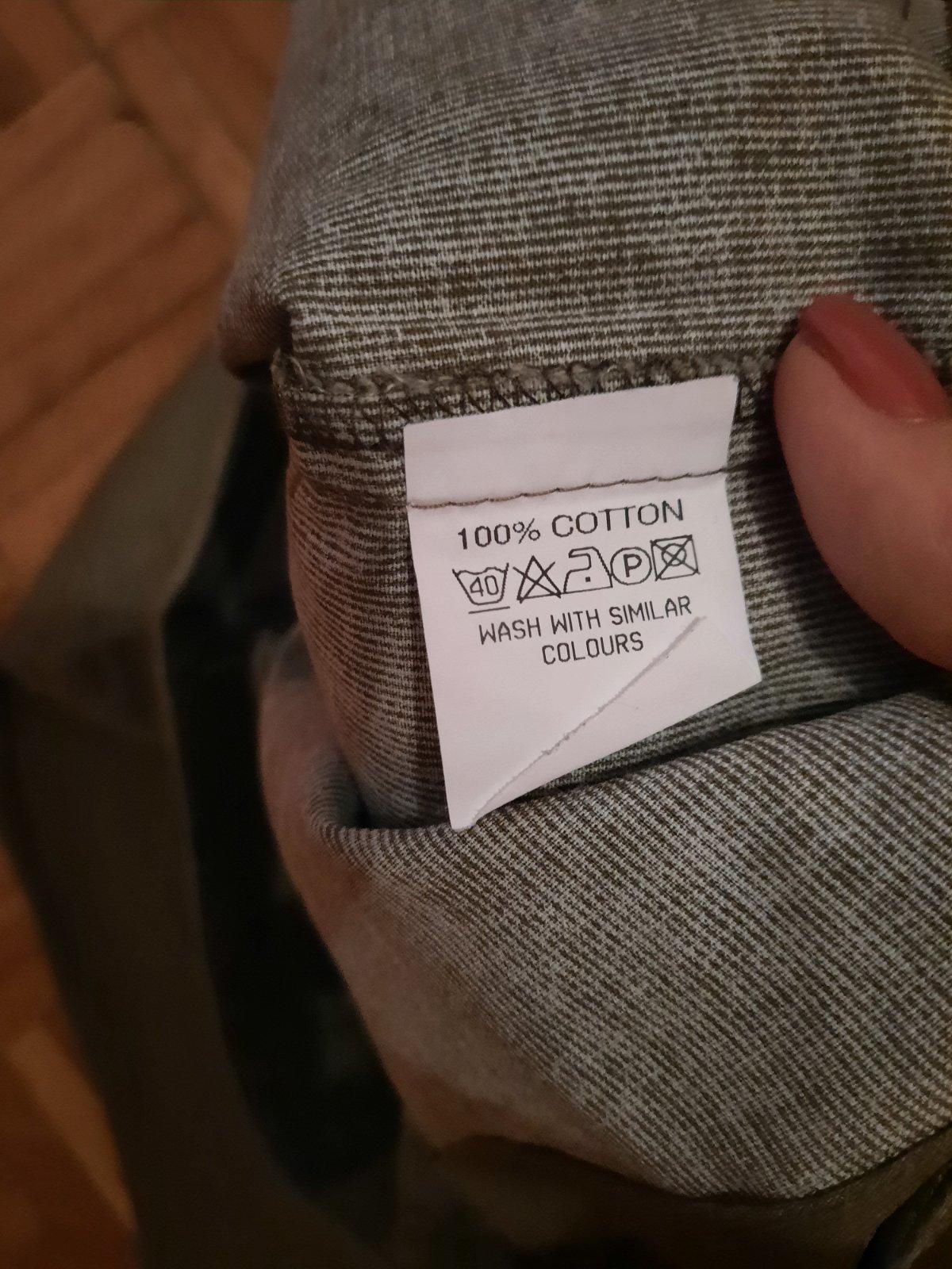 zn. White Stuff, velkost 10 ale urcite vacsie, lebo som ich mala parkrat ako tehu. Prijemna padava bavlna, pohodlne, vyborny stav, bez poskodeni Zaujimavo rieseny strih aj vzhlad :-)