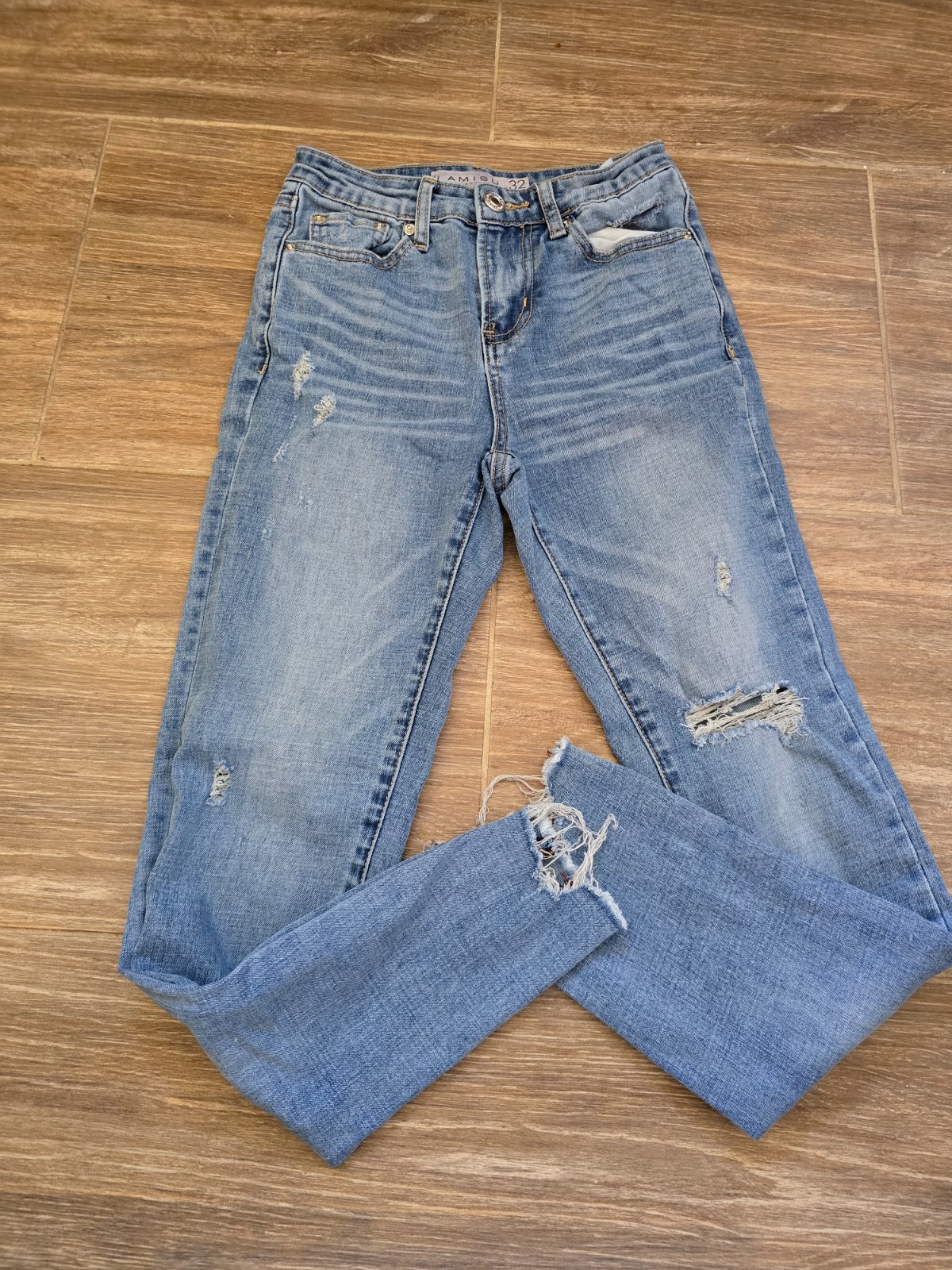 Nosené, v dobrom stave (6/10). Veľkosť 32. Obtiahnuté.