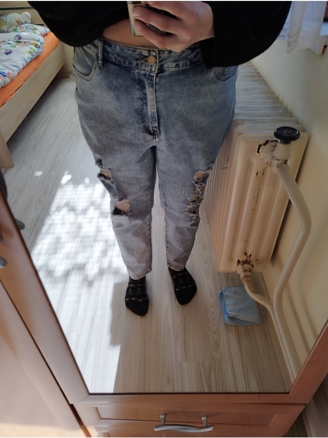 Predam rifle zo Sheinu. Pisana je velkost 4xl, sedia na velkost 48/50, pas meria 2x52 cm, boky 2x61cm, dlzka je 102 cm. Mne su široké.