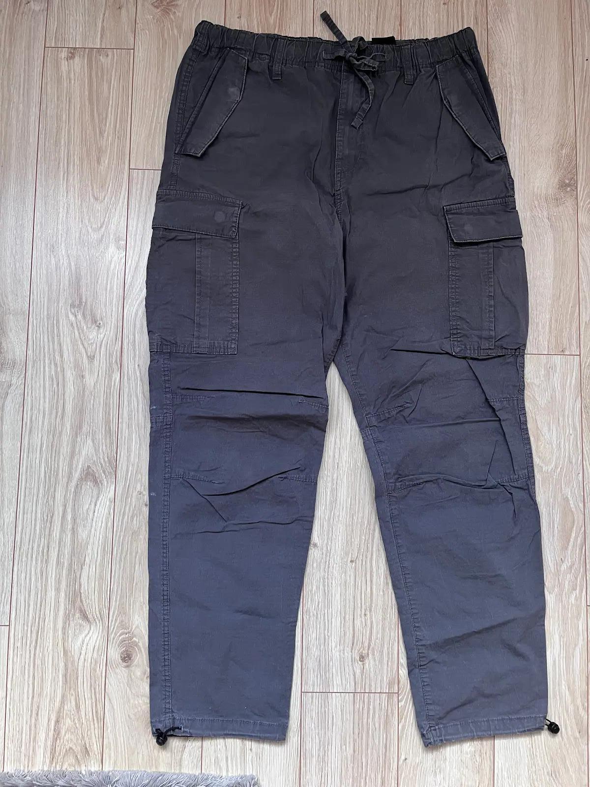 Sú zachovalé až na zadné vrecko (viď foto). Veľkosť písaná M/34