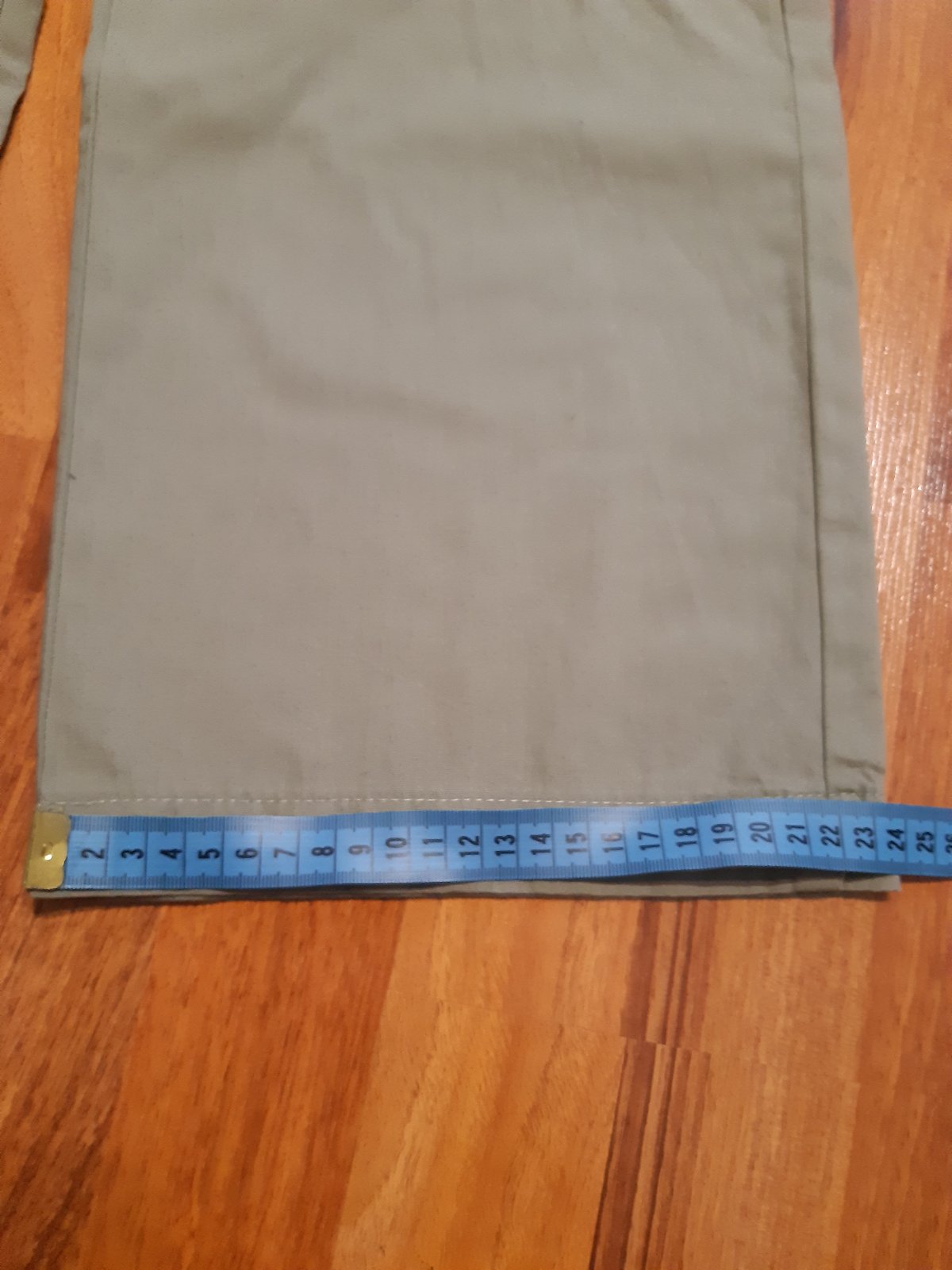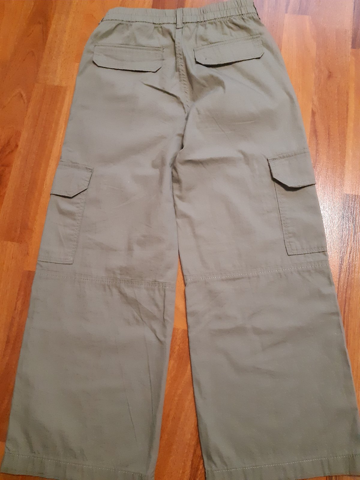 Minimálne nosené, nepoškodené plátenne nohavice. Zapinanie na zips, pás sa dá regulovať. Dlzka 82 cm, vnutorna 59,5 cm