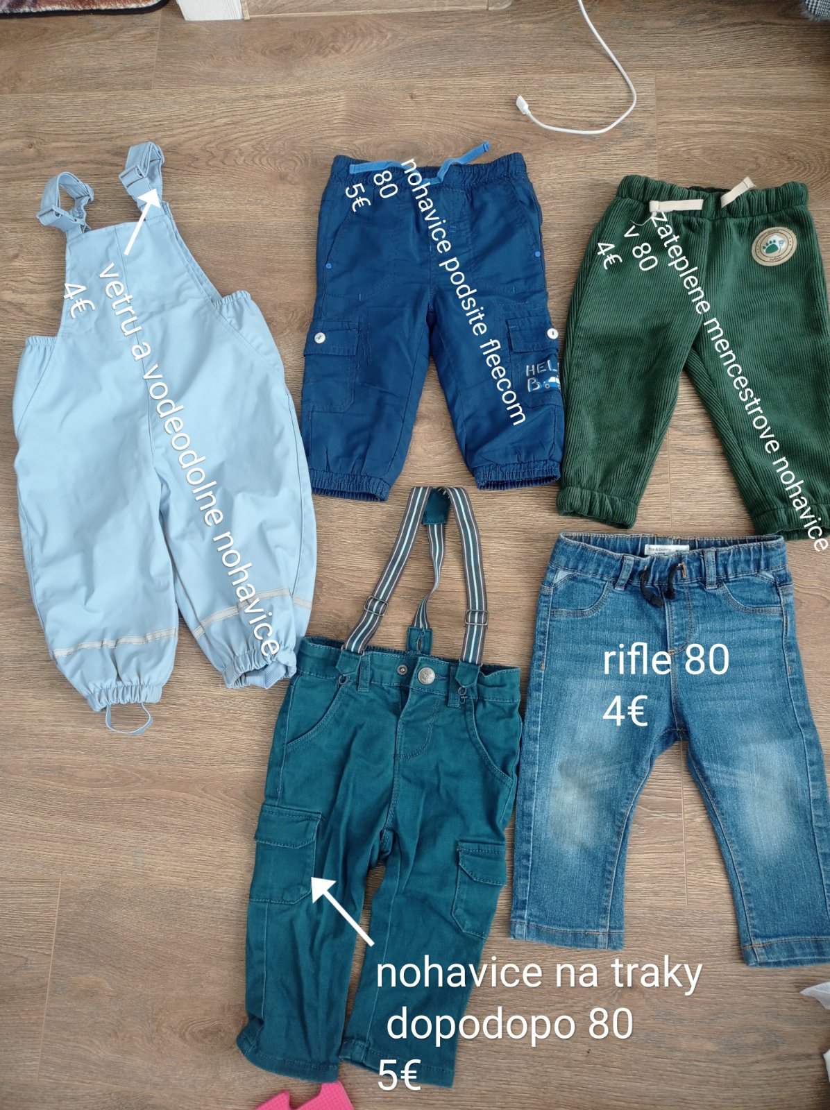 Na predaj zateplene nohavice,rifle,nohavice na traky,vetru a vodeodolne nohavice na traky velkosti 80,ceny na foto