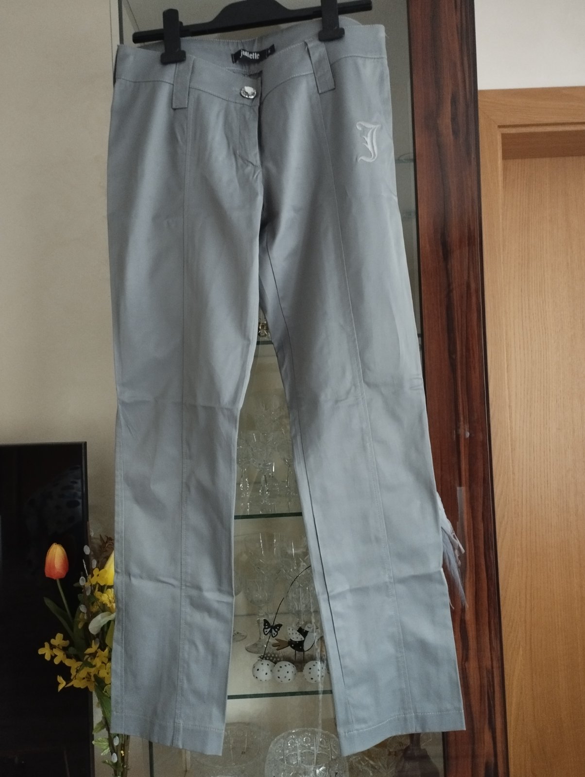 Elegantné nohavice. Bohužiaľ sú mi už úzke. Bedrové. Pás 41 cm, dĺžka 94 cm, šírka nohavice zospodu 17 cm. Pružný satén. Aj dohoda možná.