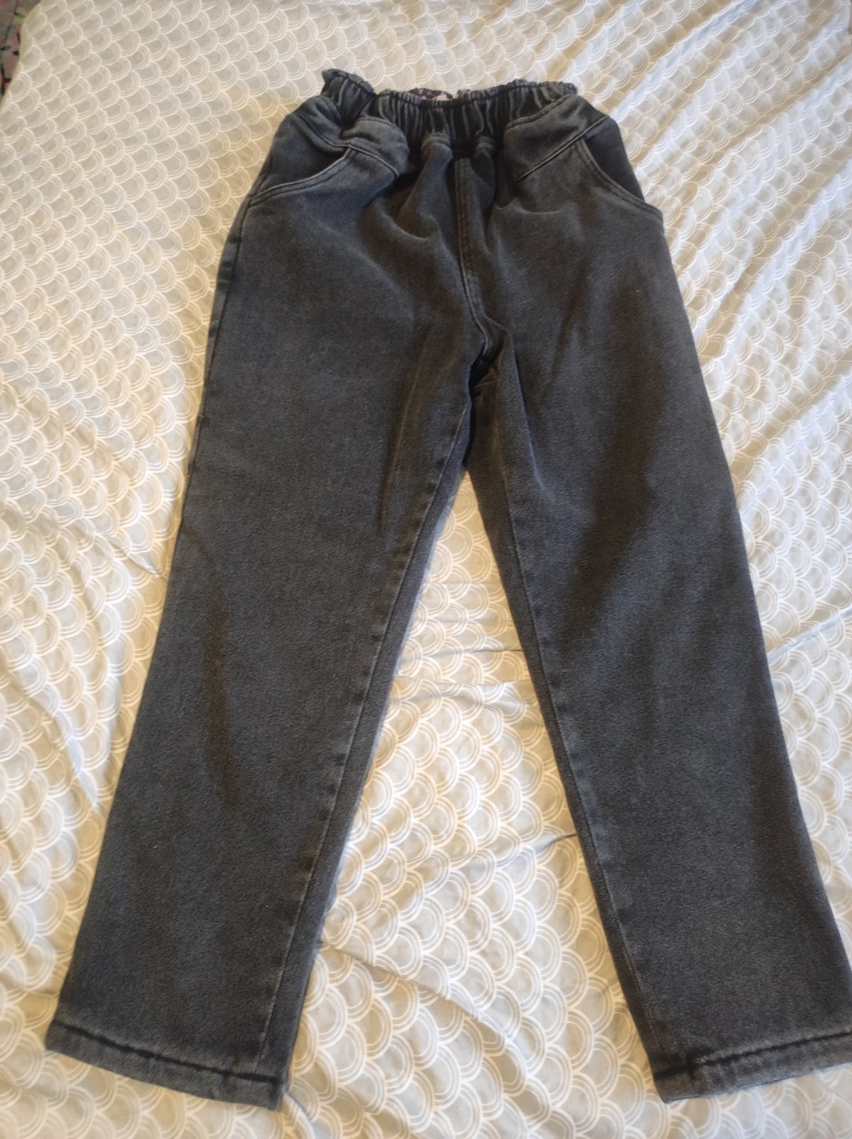 Zateplené plišom tmavo šedé rifle zn.Reserved, veľkosť 134, top stav