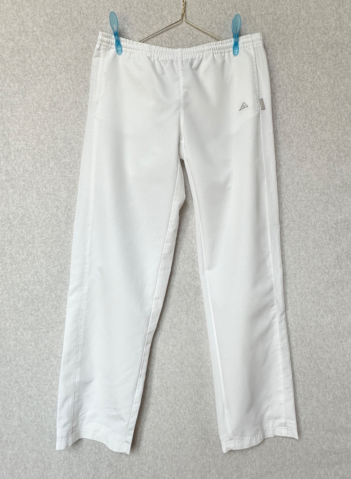 Po bokoch majú vrecká na ruky, pás je nariasený do gumky, z vnútornej strany je aj uťahovacia šnúrka. Na kotníkoch je z vonkajšej strany rozopínací zips. V peknom stave, bez poškodení, iba materiálová vísačka je odstrihnutá.