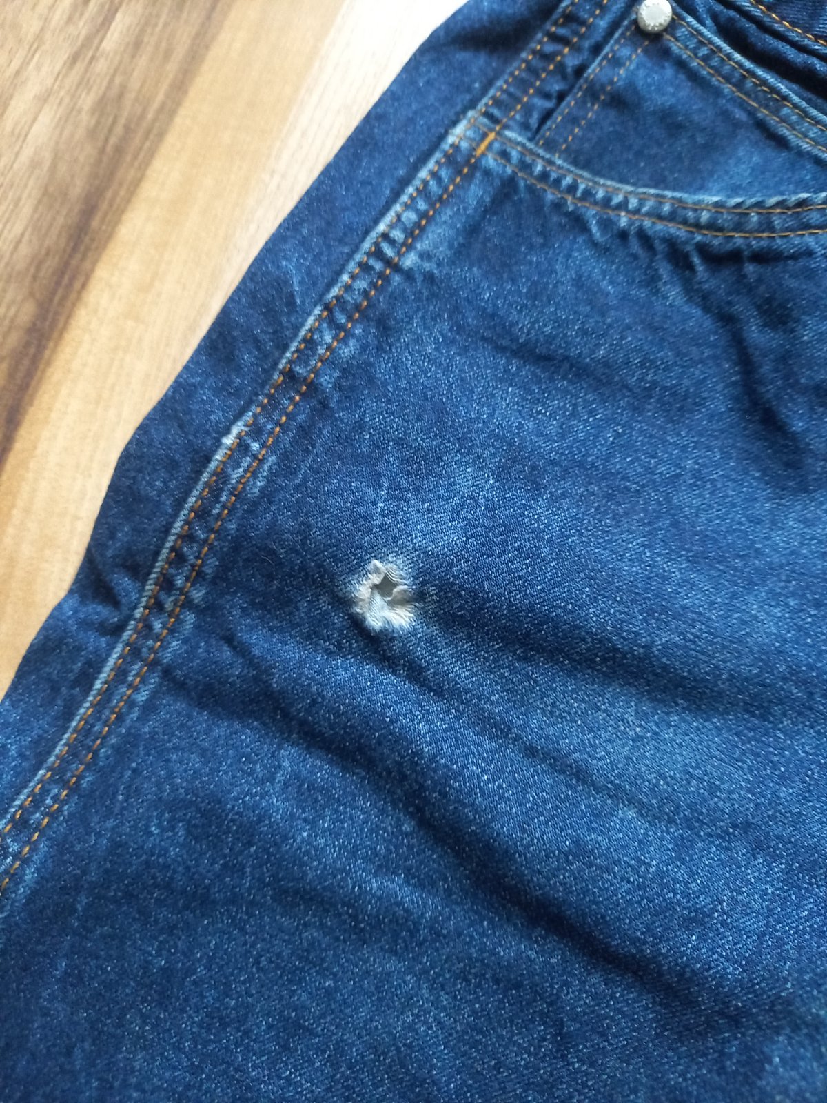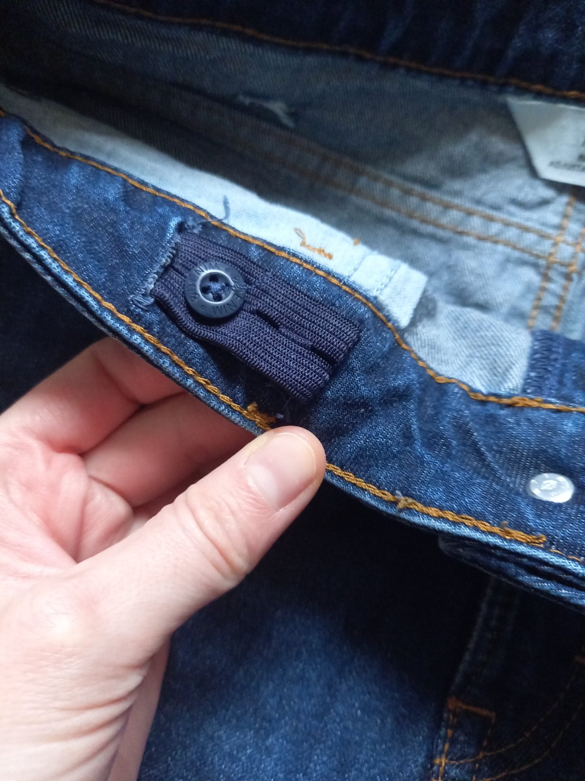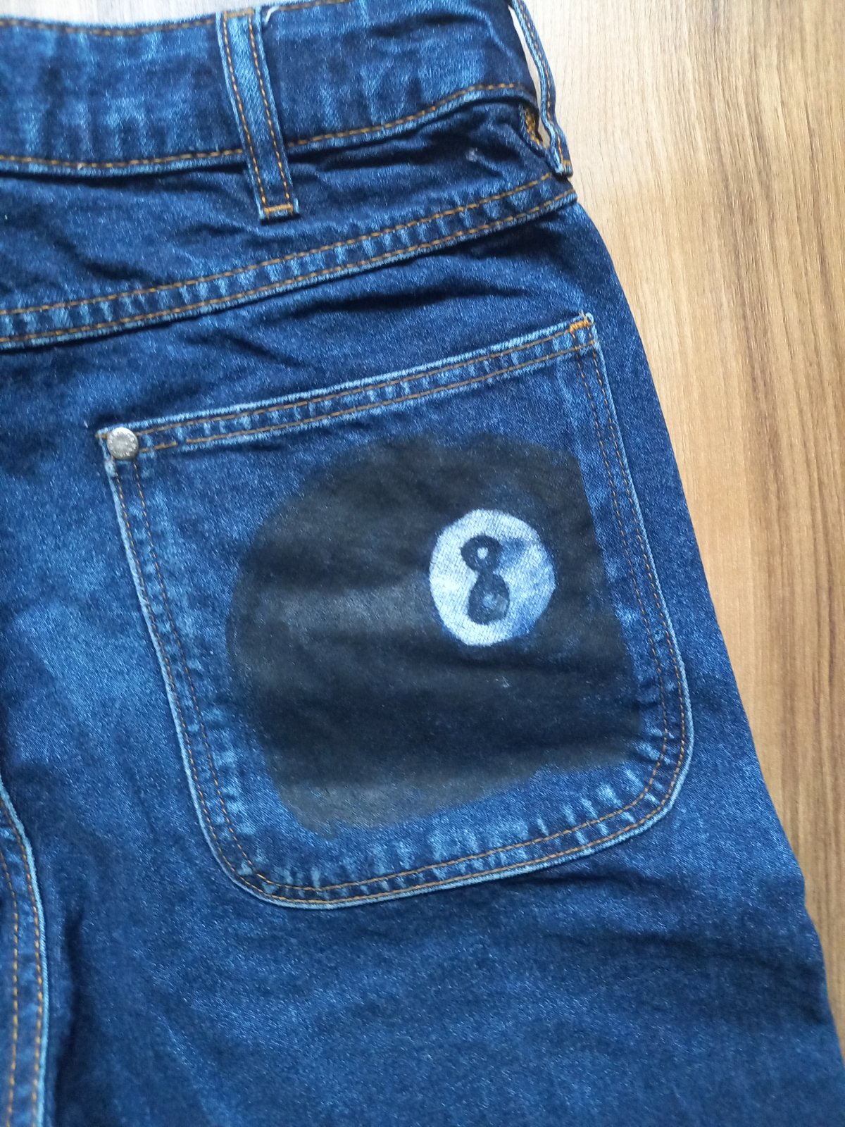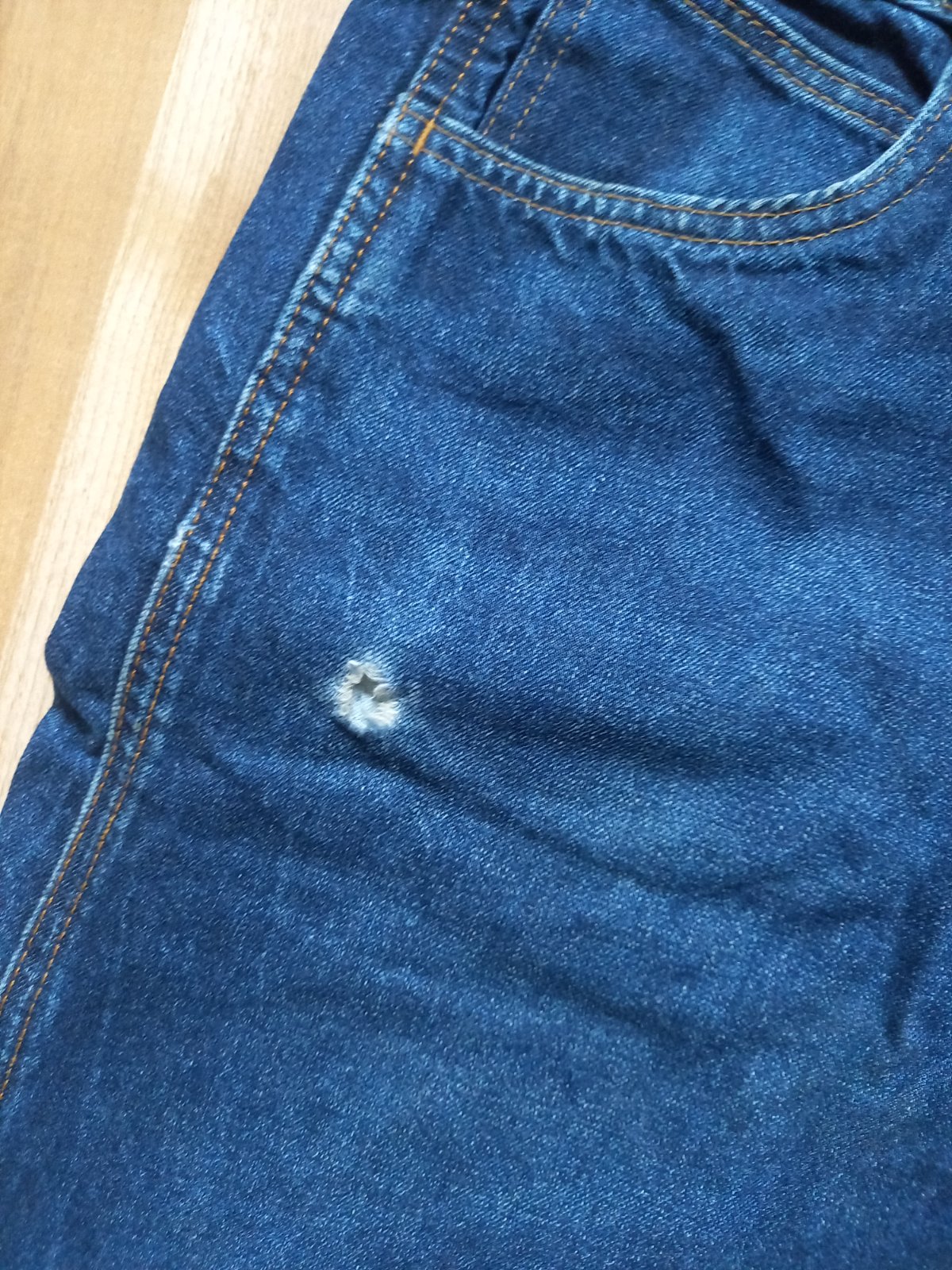 Ponúkam chlapčenské nohavice zn. H&M, široký strih, veľkosť 146. Tmavomodrá riflovina. Dve vrecká vpredu, dve vrecká vzadu. Malá vydratá dierka vpredu, jedna nohavica tiež vyšúchaná vzadu naspodku. Na zadnom vrecku ručná maľba- guľa čierna osmička. Na fotkách sú rozmery.