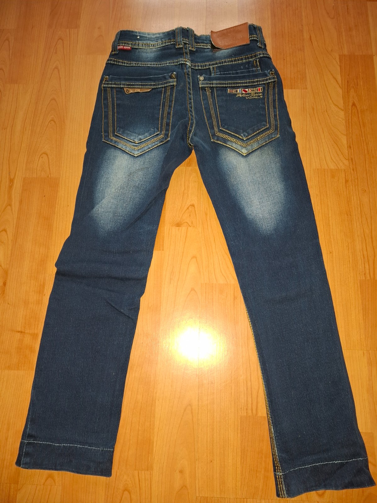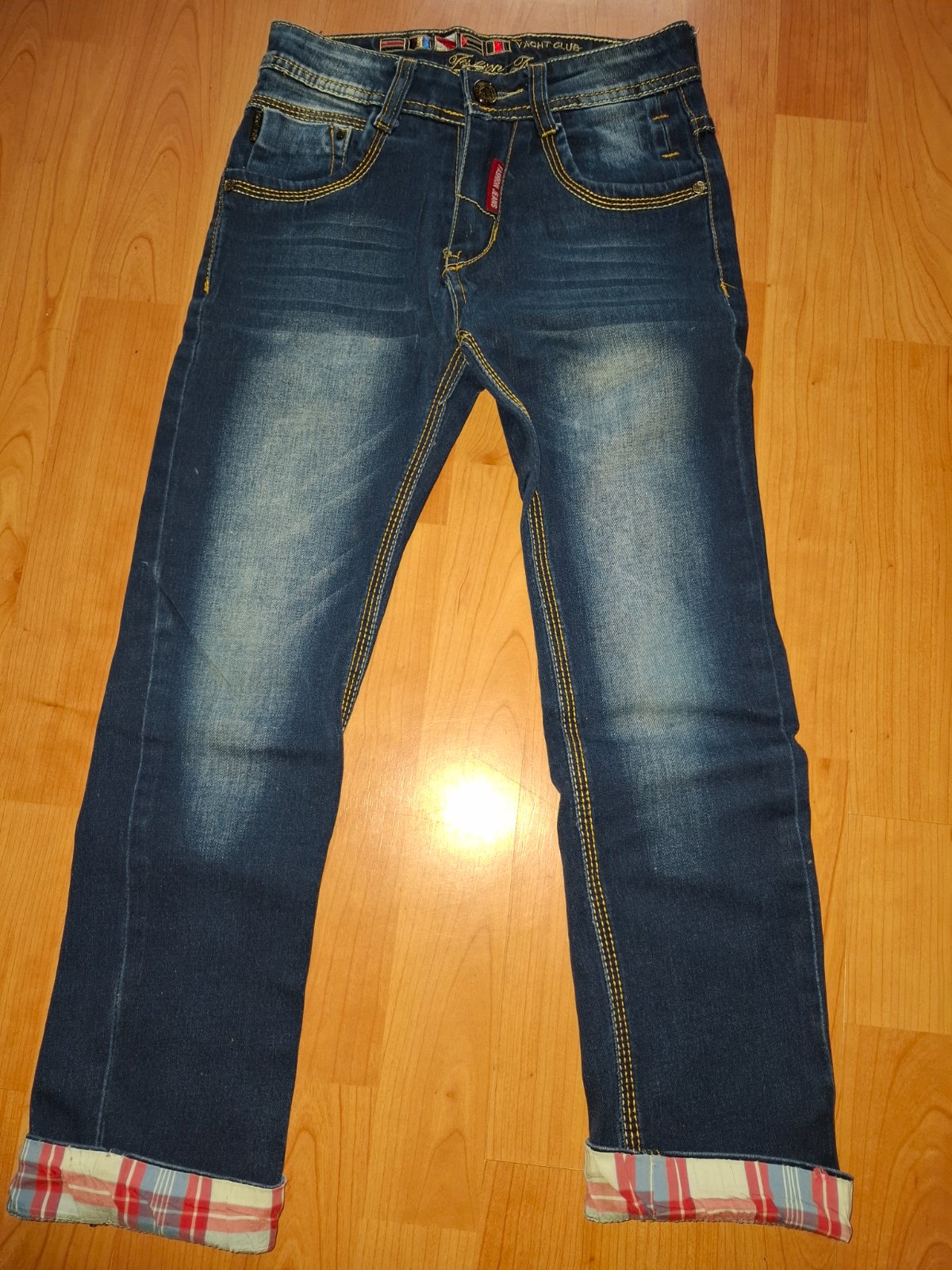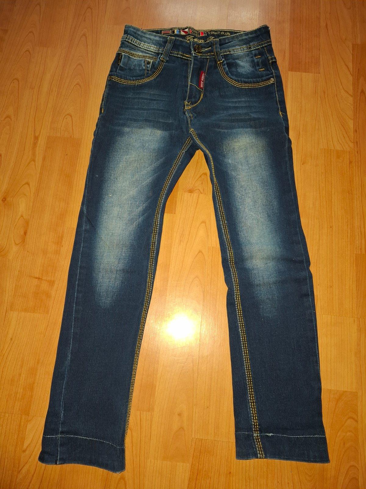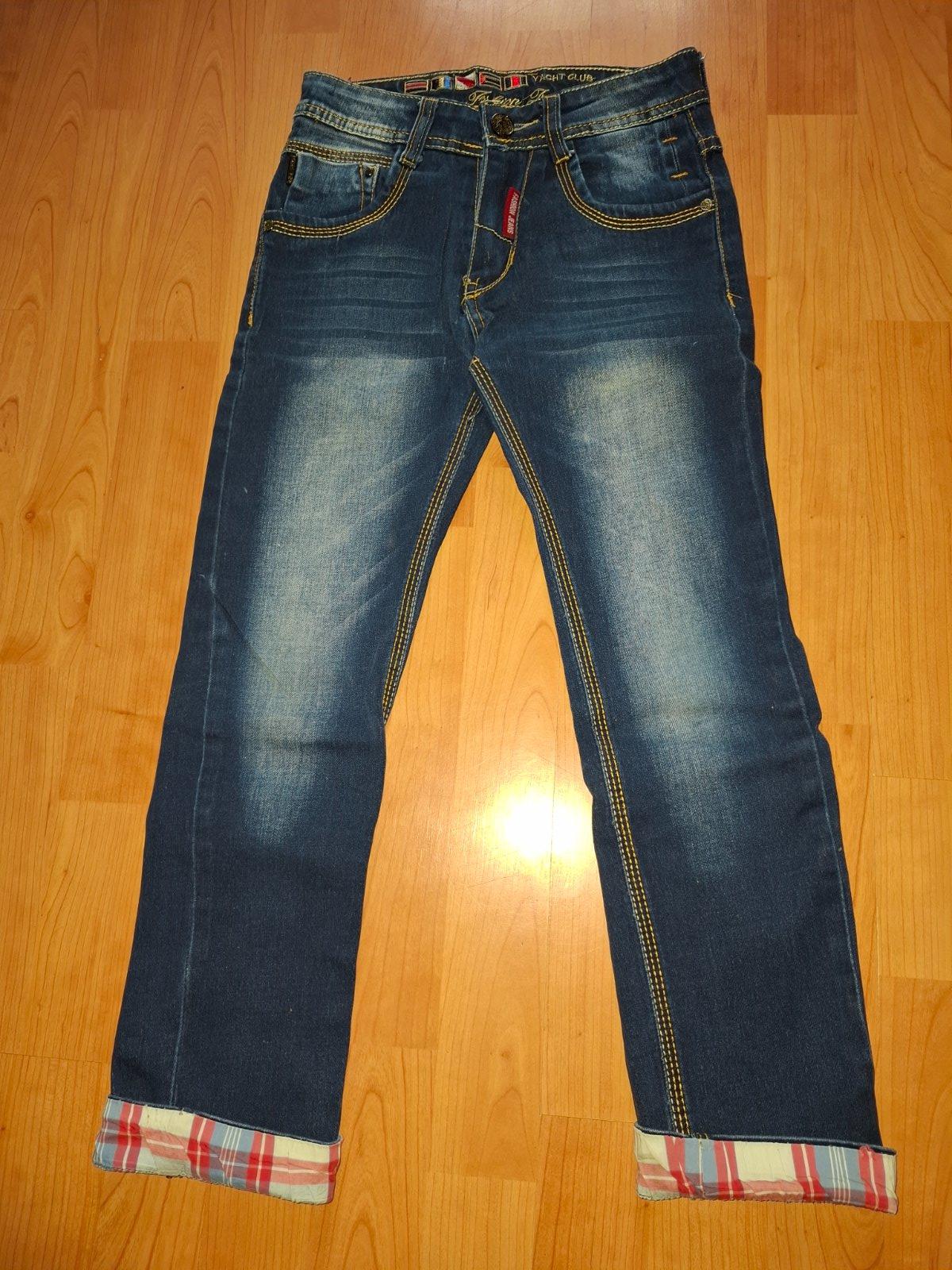 Chlapčenske rifle písana veľkosť.134 rozmery pas 30x2cm dĺžka ked je prehnuta manžera 73cm narovnana manžeta 77cm.V zadu trocha značka vypárana viď foto