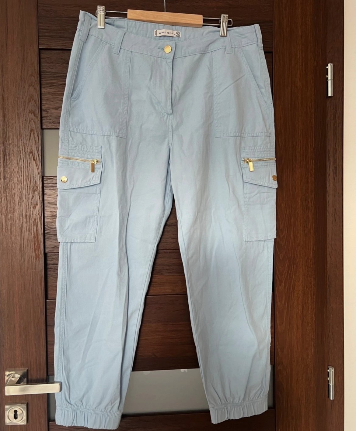 Nové s visačkou PC 24,99 vysoký pás.Velkost je 42 -XL no sadnú aj na Lko ;)