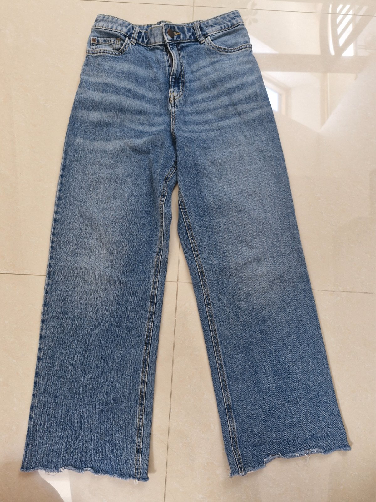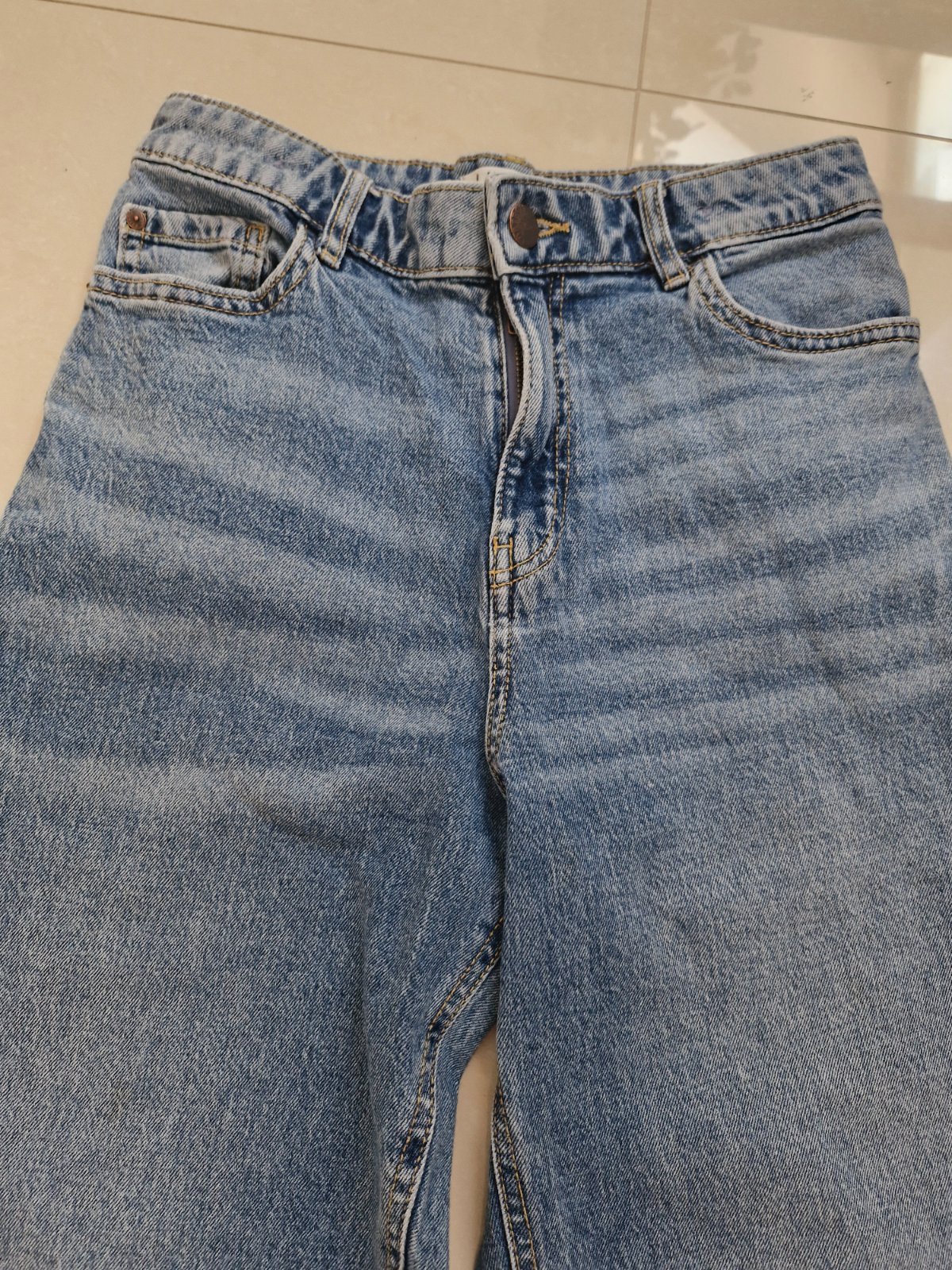 Nádherné rifle od Lindexu. Zopár krát oblečené. Kvalitné, bez akýchkoľvek známok nosenia. Len obliecť a ísť. Dĺžka 100 cm, pás 34 cm, je tam aj sťahovateľná gumička. Tak na 12-13 rokov. Širší strih...