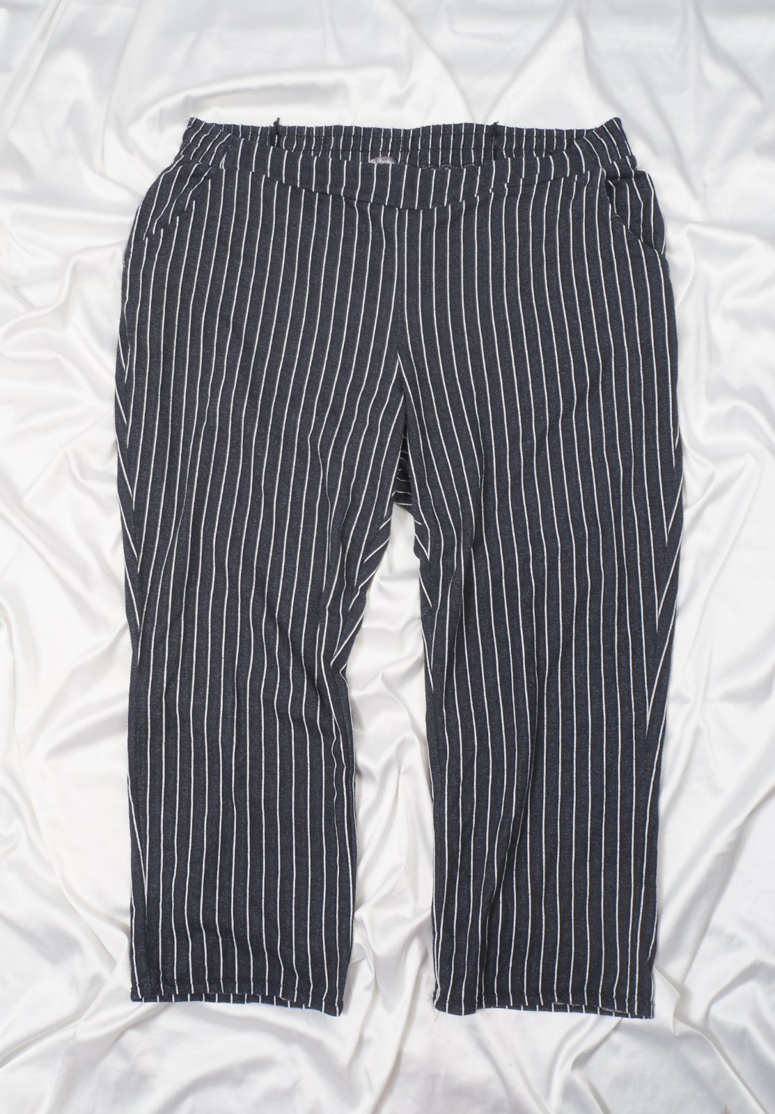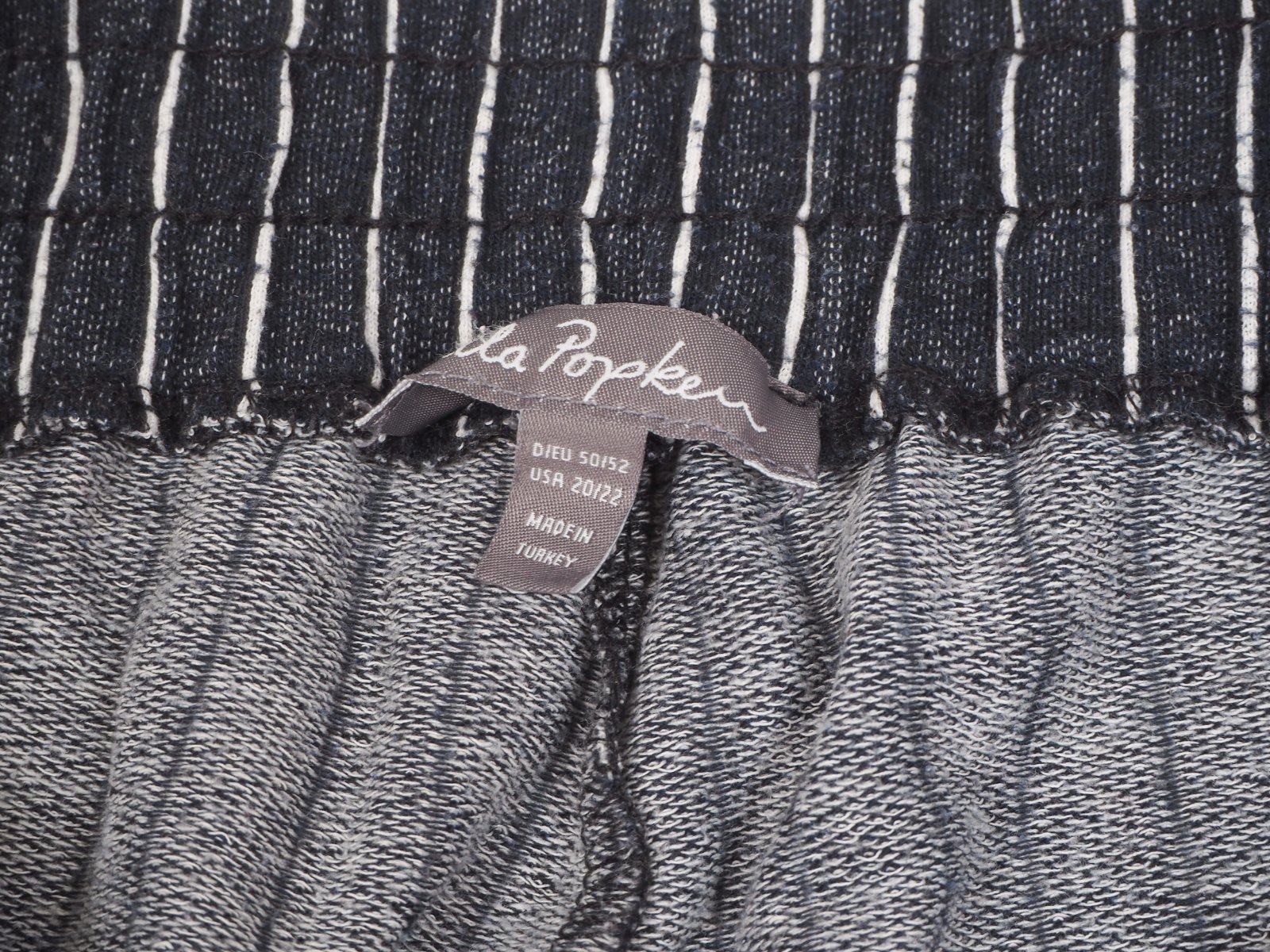 Kvalitné úpletové nohavice/tepláky, v páse gumka, vpredu všité vrecká, 40% bavlna, 40% polyester, 20% viskóza, jemne vidno nosenie.