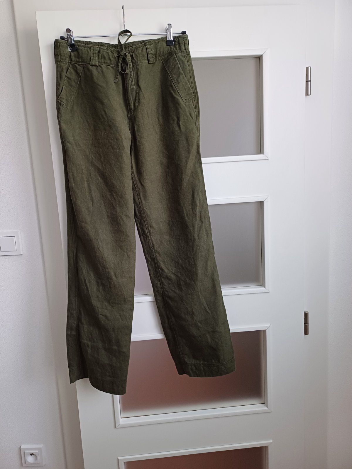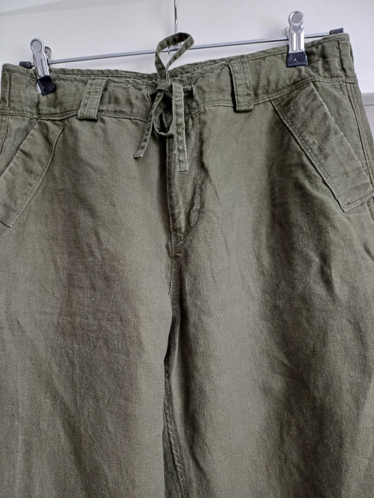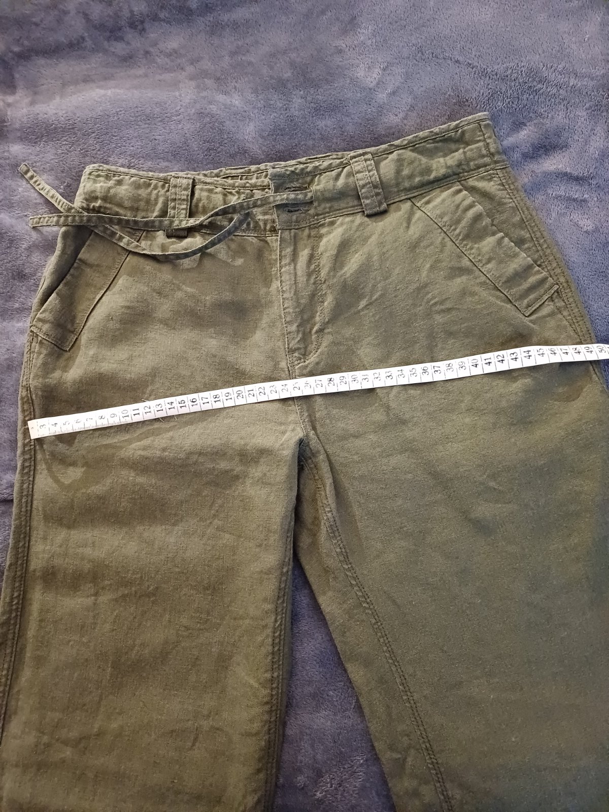 Veľmi dobrý stav, len pri fotení som si všimla na zadku nenápadný fľak - viď. foto. Možno pôjde aj vyprať - neskúšala som. Veľkosť uvedená 30 - sedí na M (38/40). + poštovné
