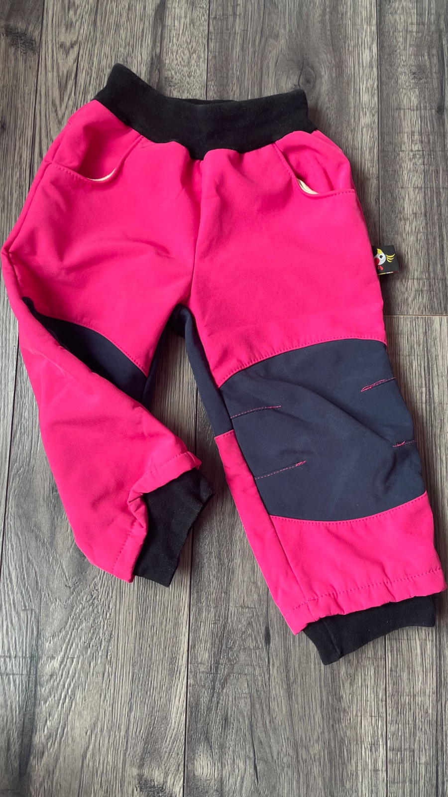 Zateplené softshellové nohavice bez fľakov a poškodení. V páse na gumu.