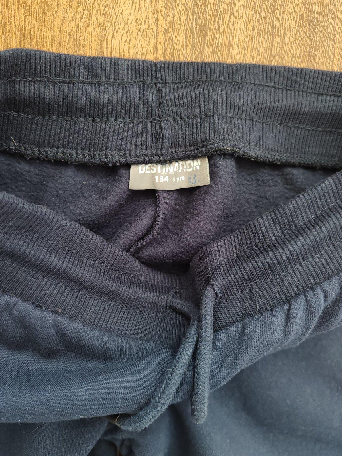 Farba teplakov je tmavomodra. Nie su vyblednute. Bez dier a flakov. Veľkosť daná výrobcom 134/140. Pre 8-10 rokov. Celková dlzka 82 cm.
