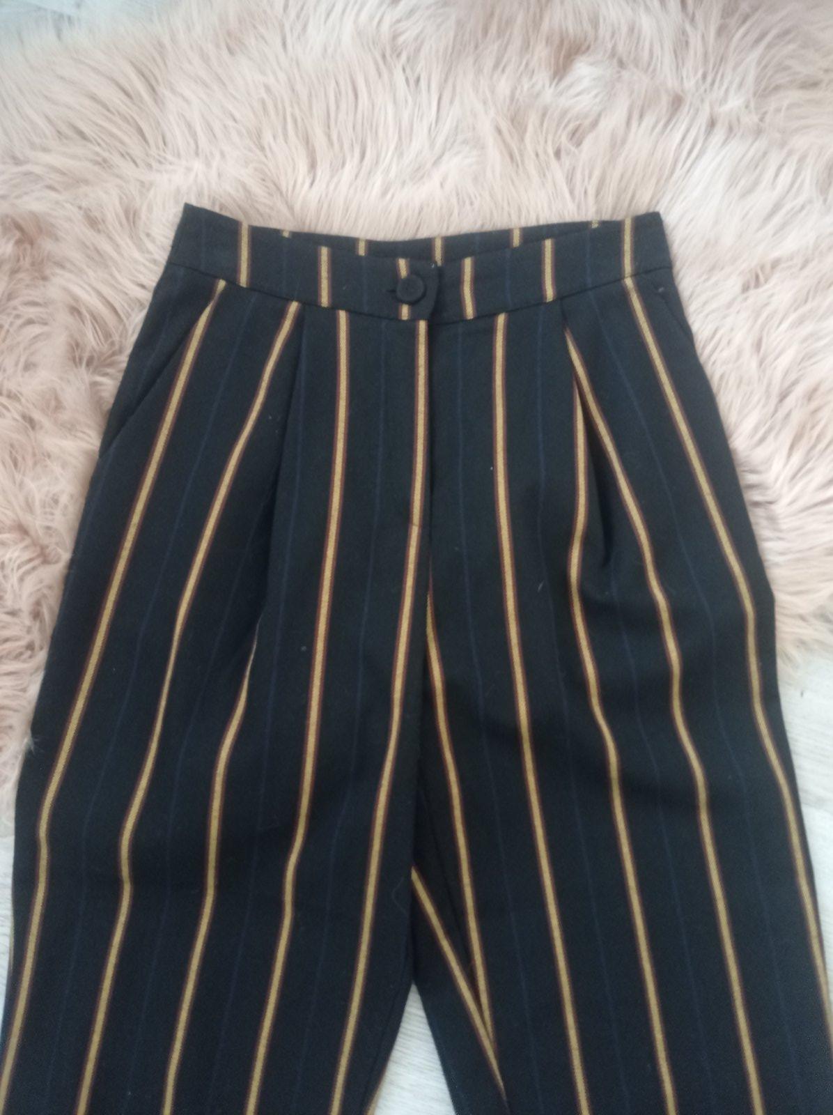 Krásne pásikavé nohavice s vysokým pásom, mrkvový skrátený strih.Velkost XS/S.Cena 12€+pošta