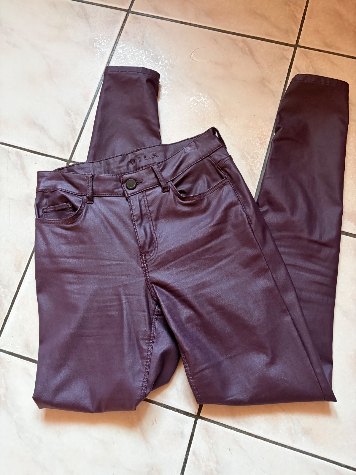 Kožené eladtické nohavice vila 1x oblečené, pohodlné, mne sú trocha voľné, veľkosť uvedená XS, ale sedia na S, preto ich predávam, cena 6€