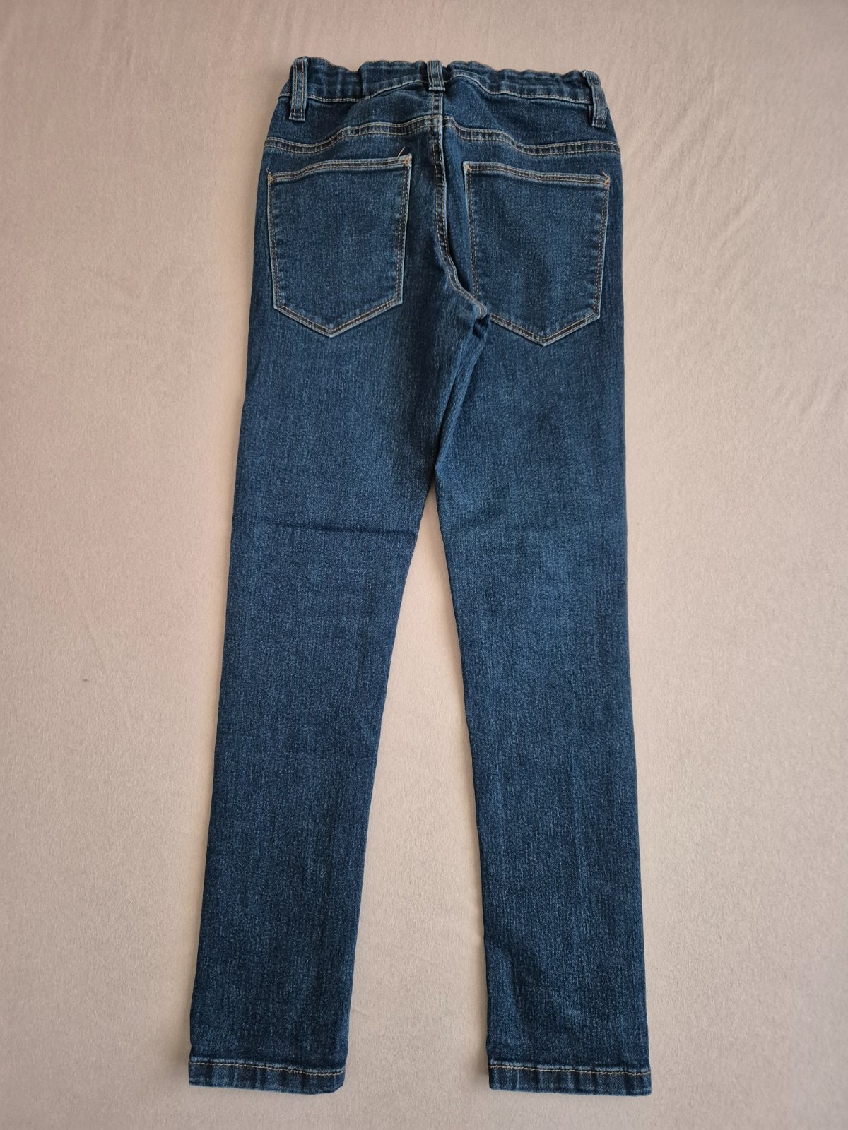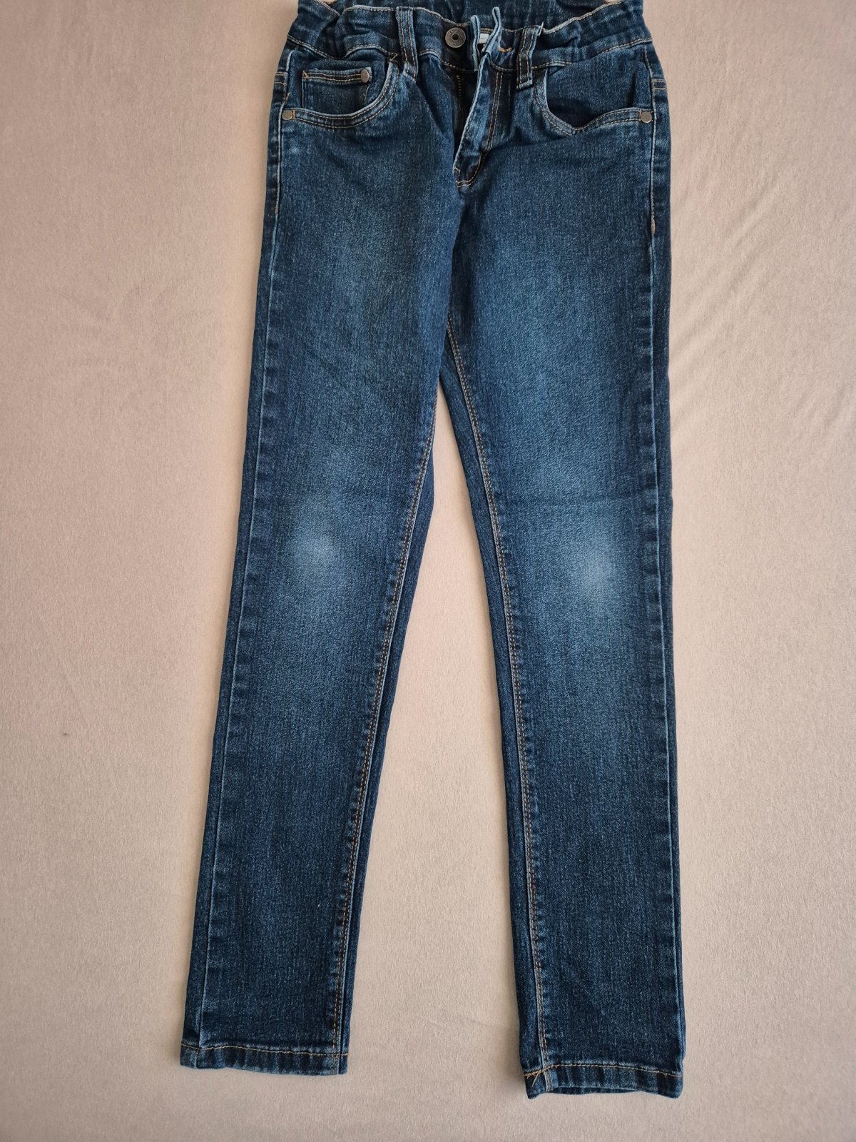 Predam nosene rifle. Uzsi strih pre chudeho chlapca, v pase gumicka s gombickami na regulovanie sirky pasu. Dlzka cca 85 cm. Vnutorna dlzka nohavice 63 cm. Velkost 140.