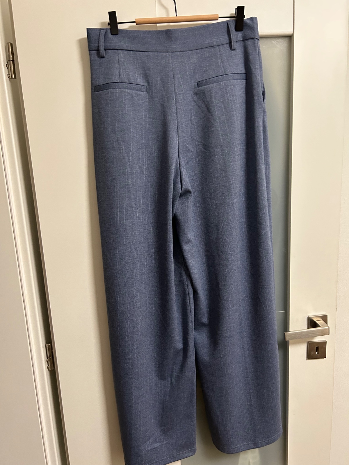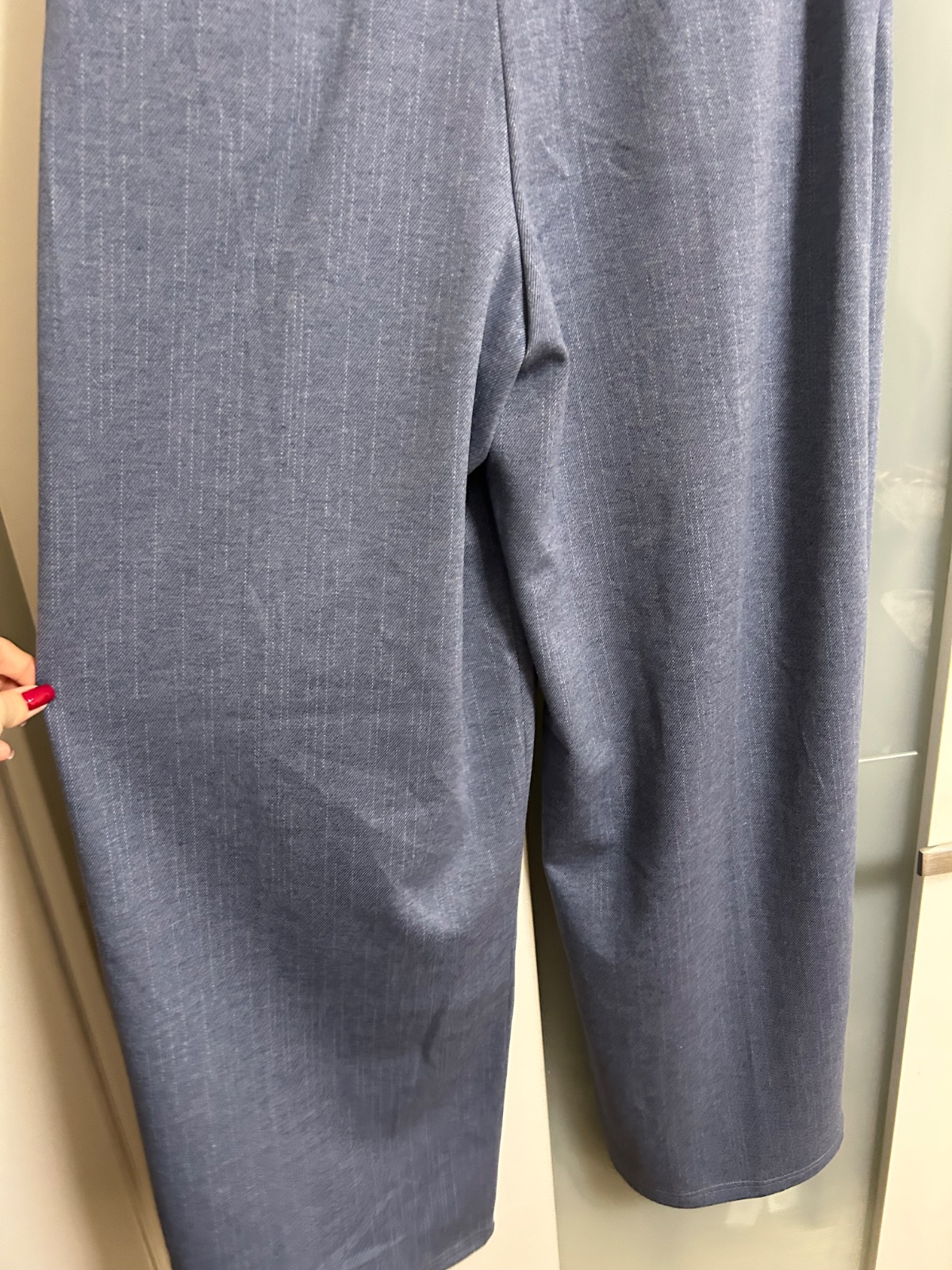 Top stav, oblečené pár krát, na jednej nohavici vzadu dole malé bodky (viď foto), asi od topánok pri šoférovaní, neskúšala som odstranovať, skoro ich nevidieť, farba jeans, príjemný padavý material, ideálne na prechod, dl.111, pas 40, sed 37/45, dole 30