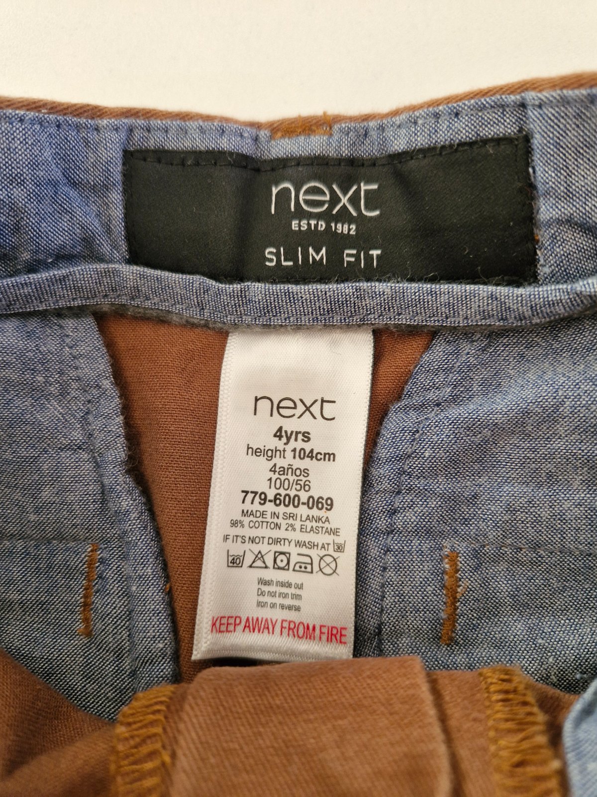 džínsové nohavice next veľ.104 výborný stav pás v kľude 2x24cm,po natiahnutí do 2x 29cm,dĺžka cca 60cm,