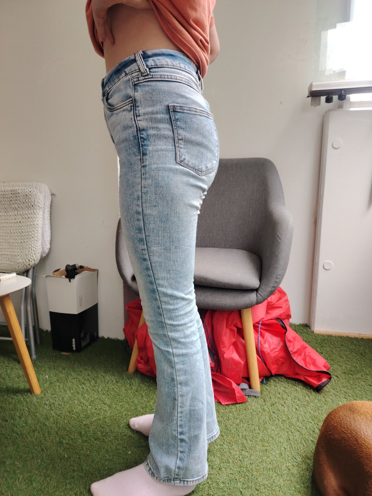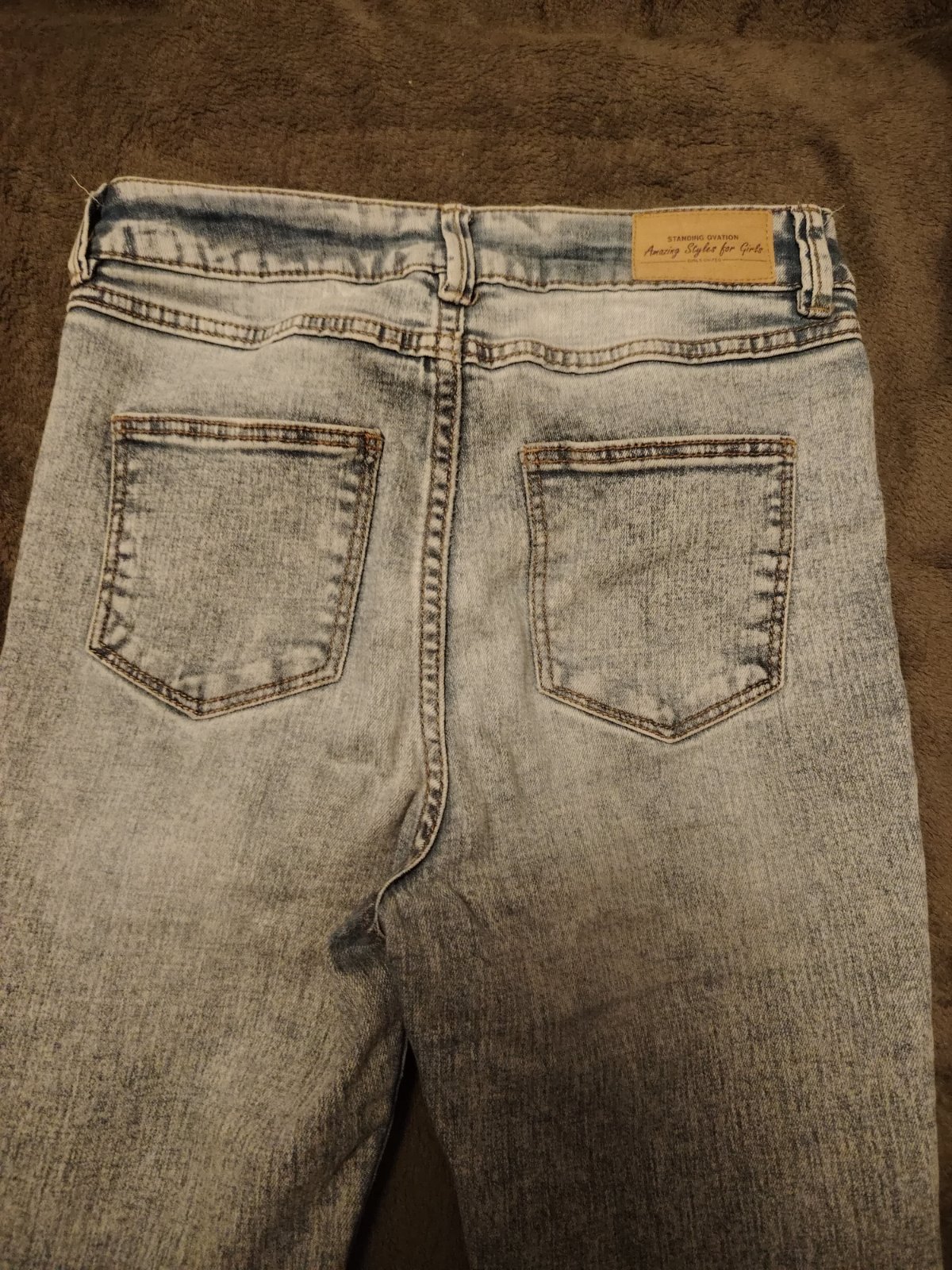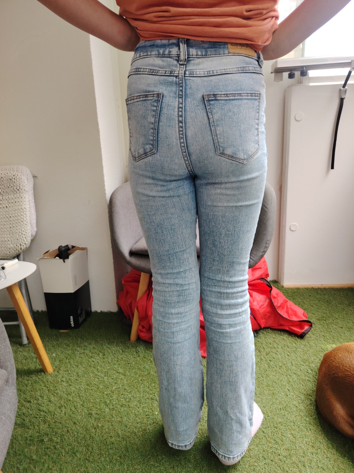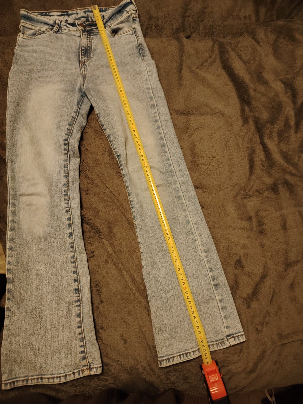 Veľmi zachovale, ako nové, elastické, pas sa natiahne o 3 cm a stehno o 4 cm. Na fotkách sú dcére už malé preto sú tak obtiahnute. Jemná riflovina. Cena už s poštou