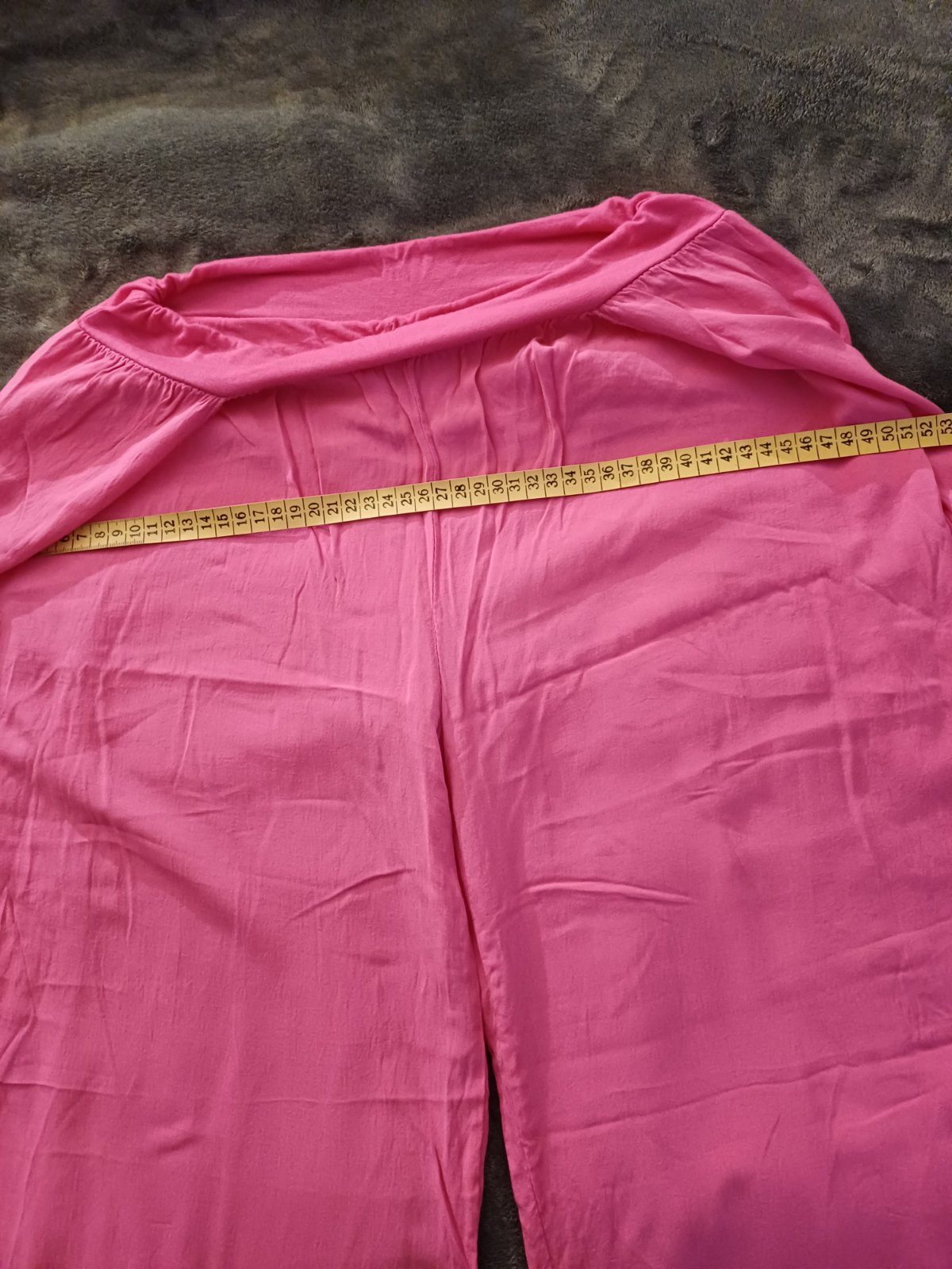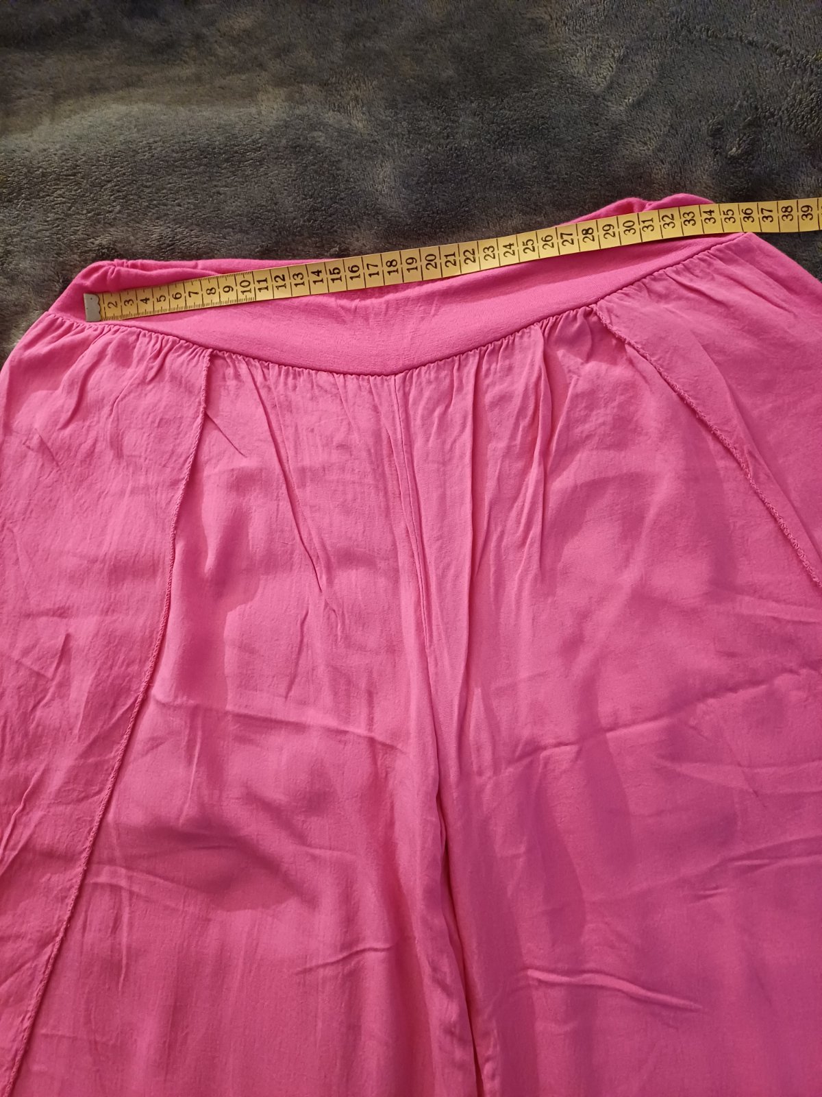 Mierne elastické, pekná sýta farba, majú vrecká. Rozmery: pás na voľno 72 cm, po natiahnuti 78 cm, dĺžka 100 cm.
