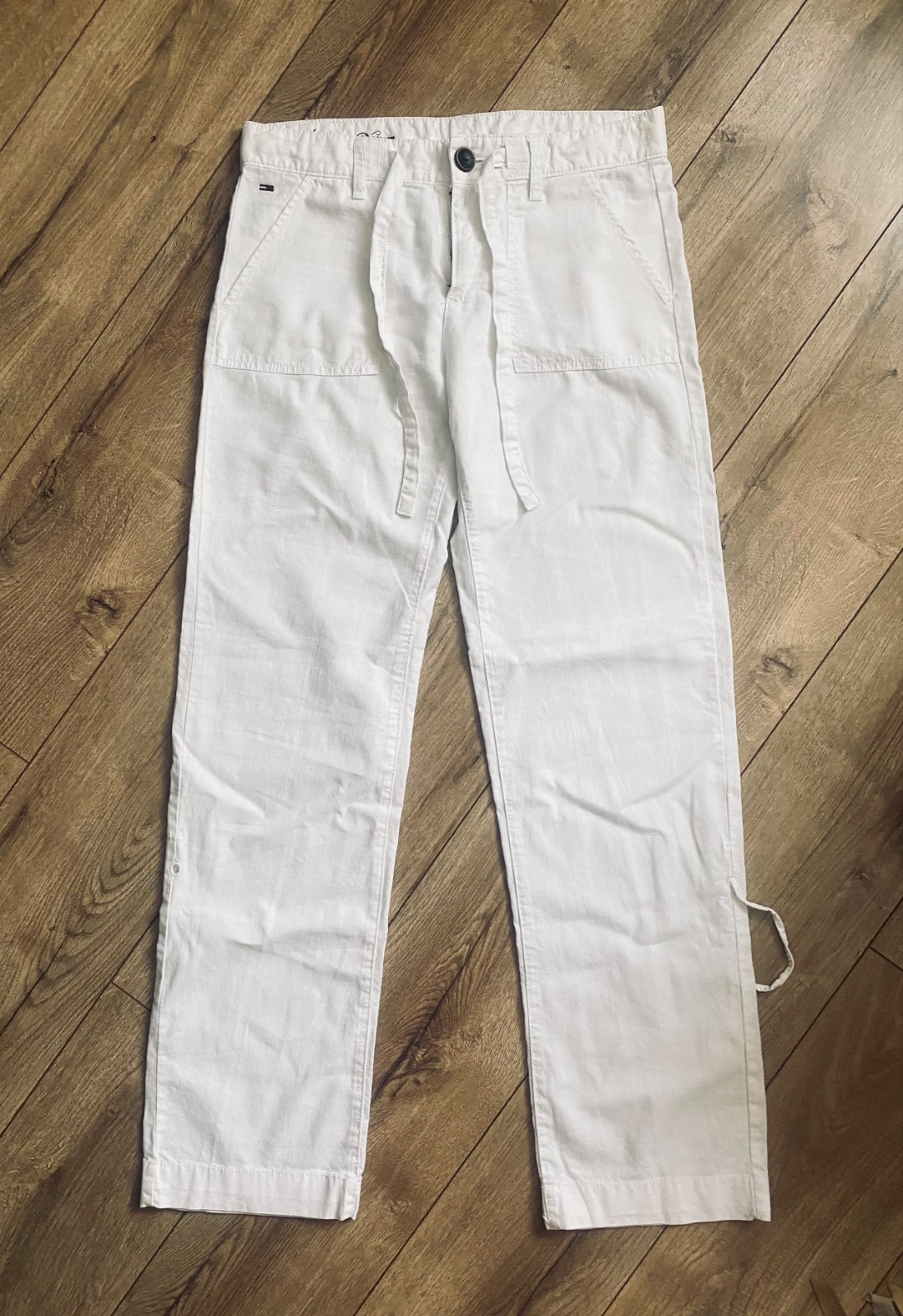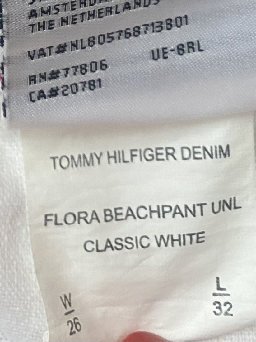 TOMMY HILFIGER prekrasne damske nohavice kolekcia jeans, siroky moderny strih na boku recko s vysivkou. Material 100% bavlna platno Velkost 29/30, 30/30 co je nase M/L 38/40 PC 120€