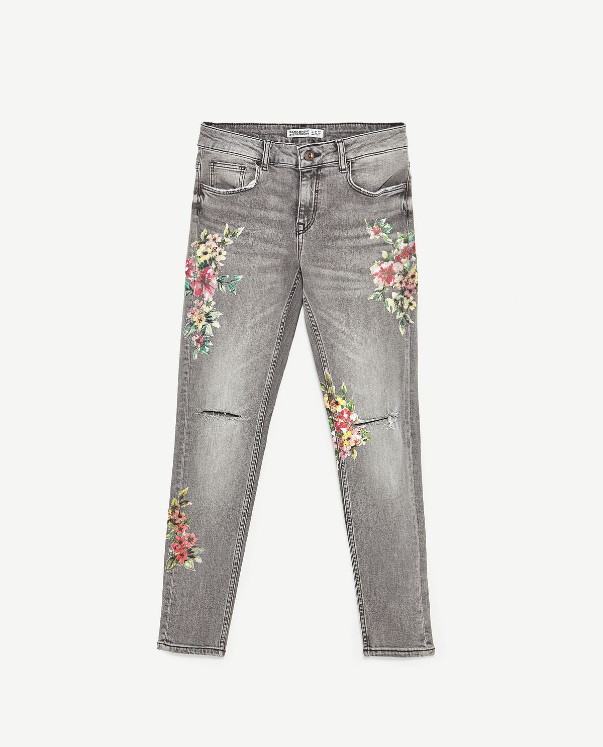 Dámske slim rifle Zara, vyšívané, umelo potrhané.