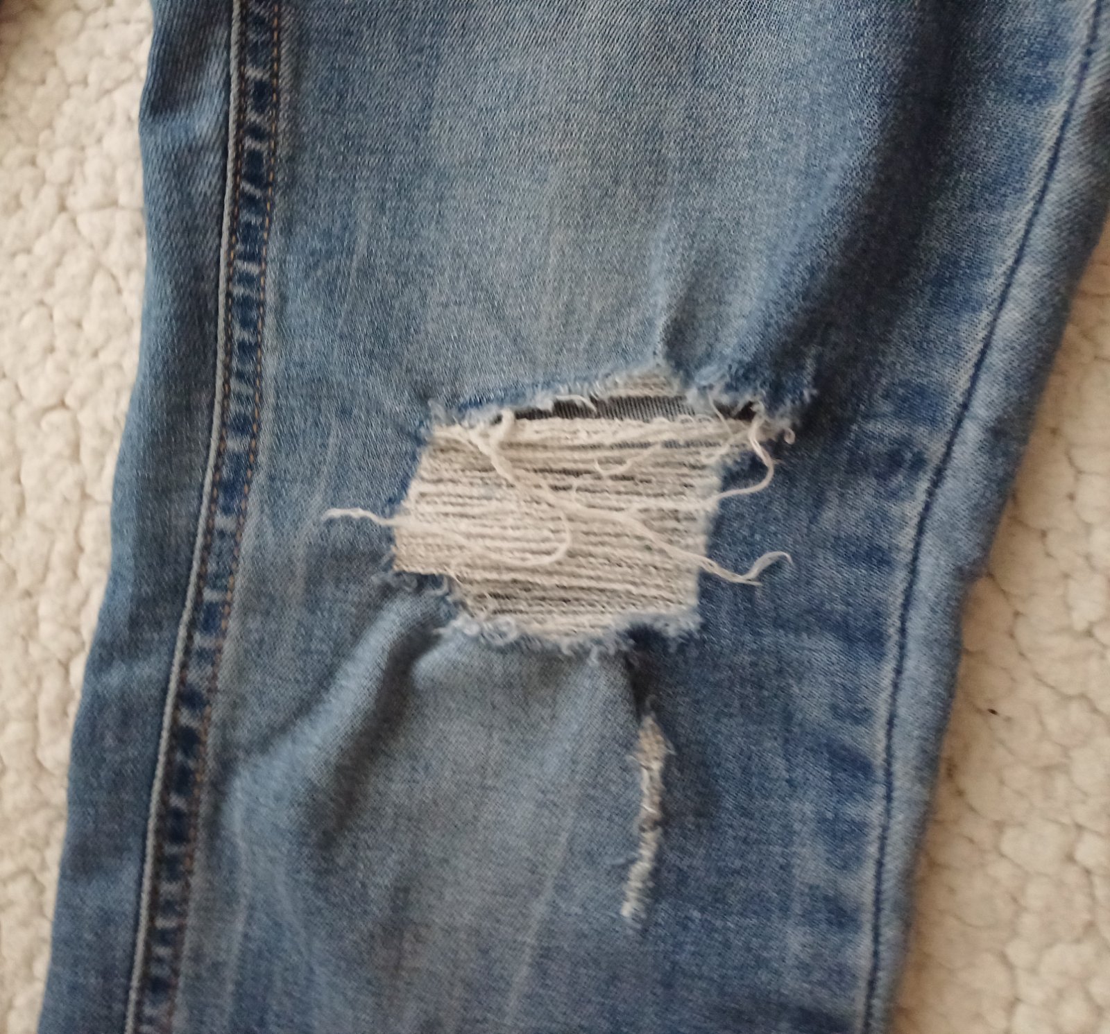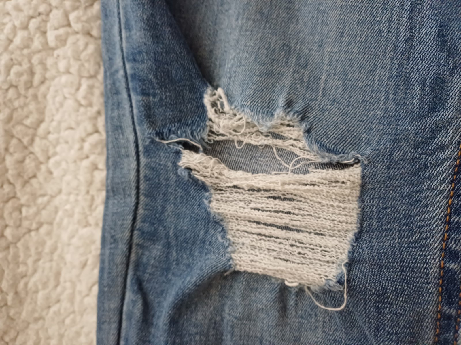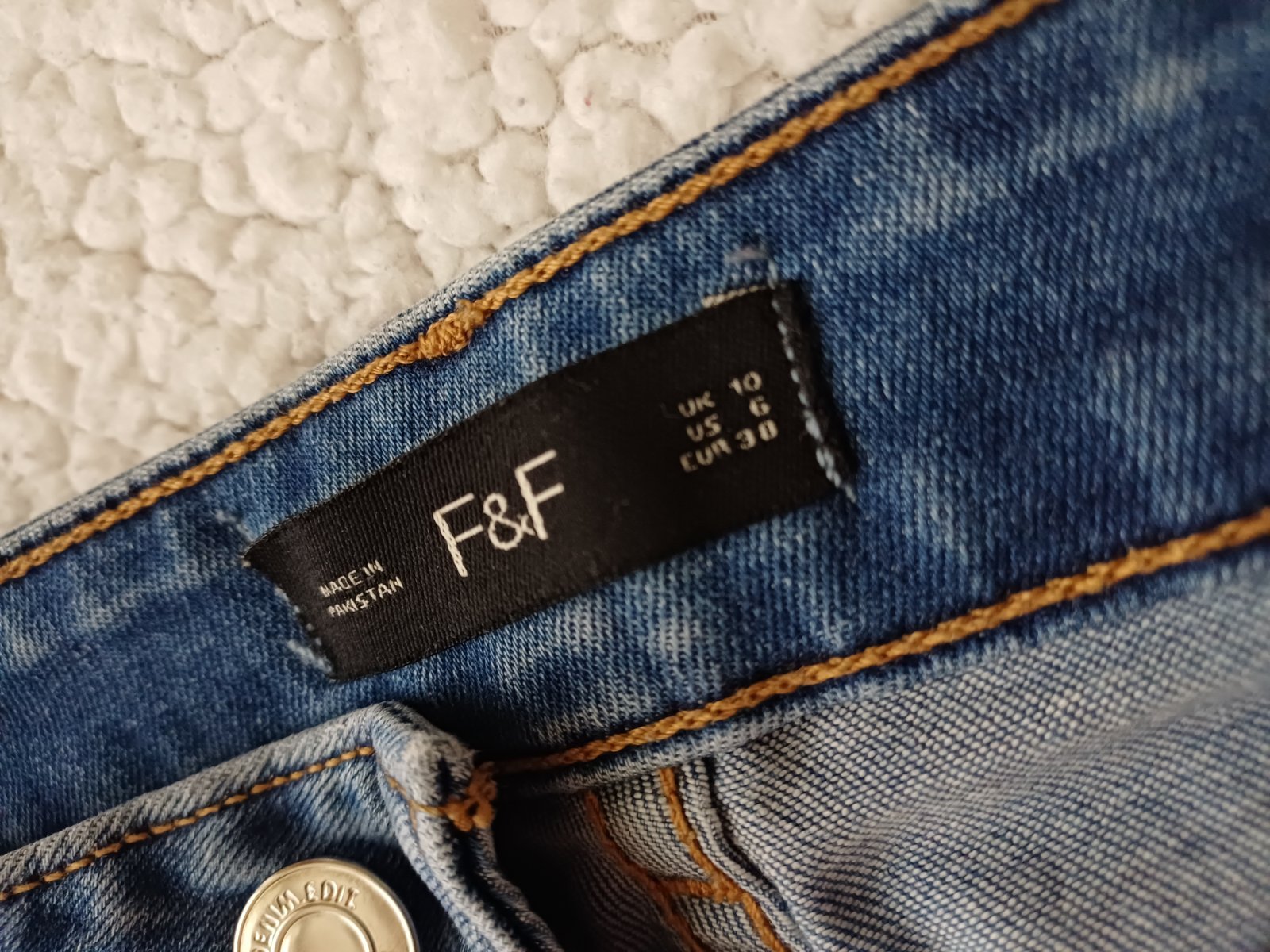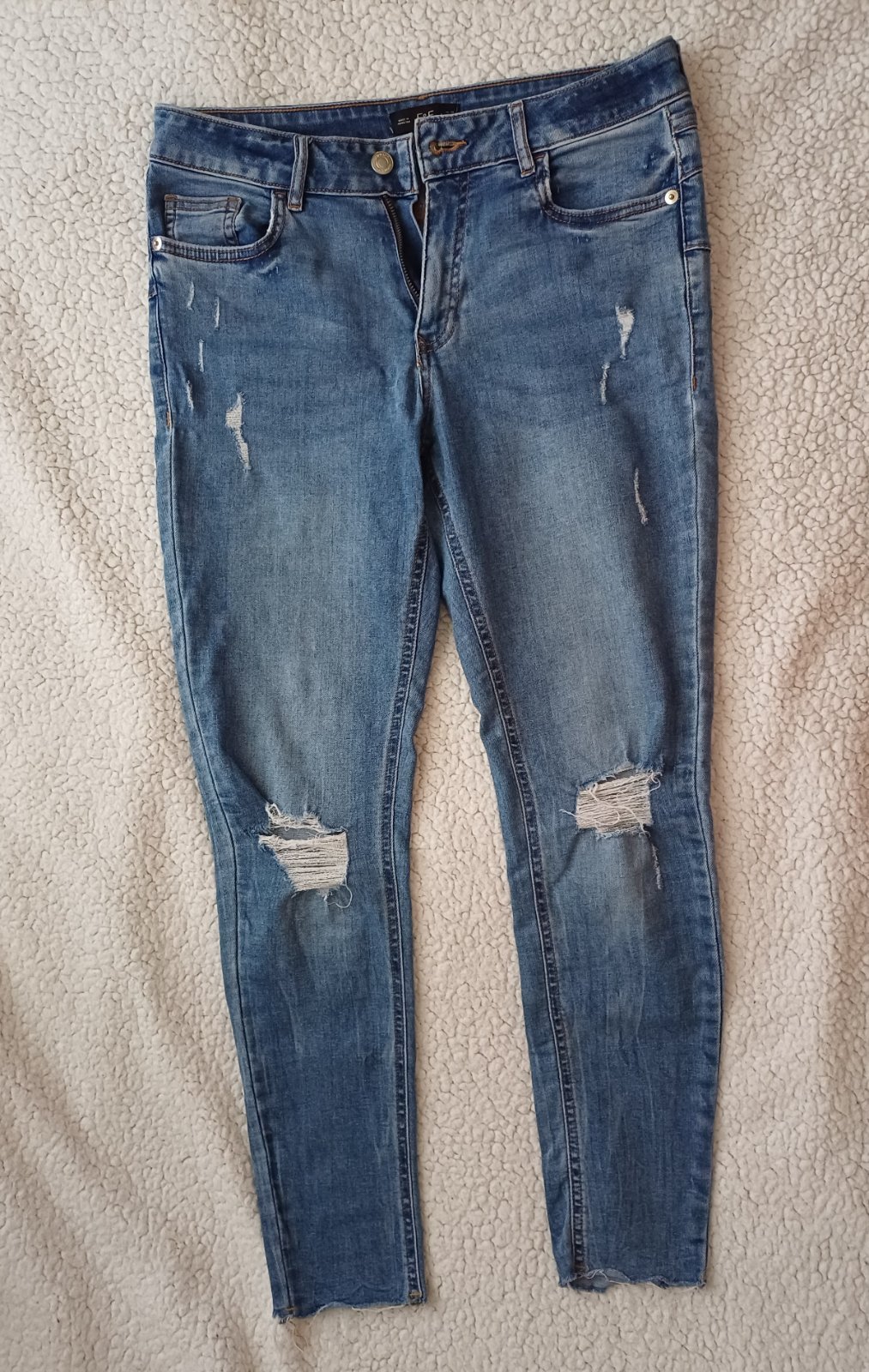 Štýlové modré rifle s dierami vo veľkosti 38 zn. F&F ,jemne elastické.