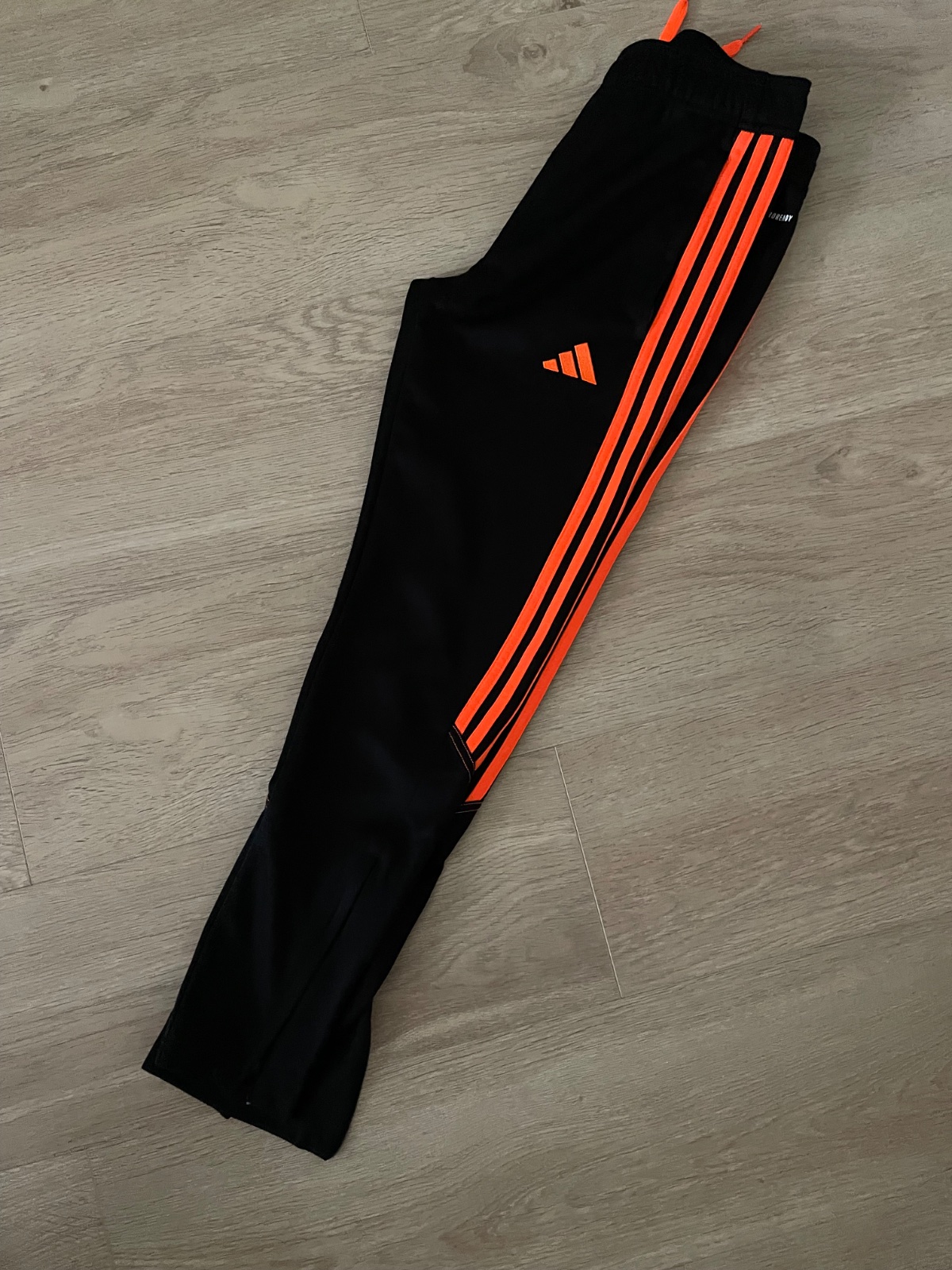 Originál Adidasové tepláky 1x oblečené. Pozor - nie je to TEPLÁKOVINA. Veľ písaná 12-13 r. Vpredu majú 2 vrecká. V páse je guma a šnúrka. Farba je pekná čierna, zle mi to odfotilo. Skôr na chudšieh...