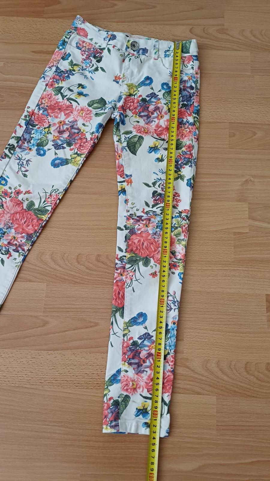 Posúvam po dcérke tenšie nohavice, elastické, strih riflí. Bez poškodení, miery na fotke