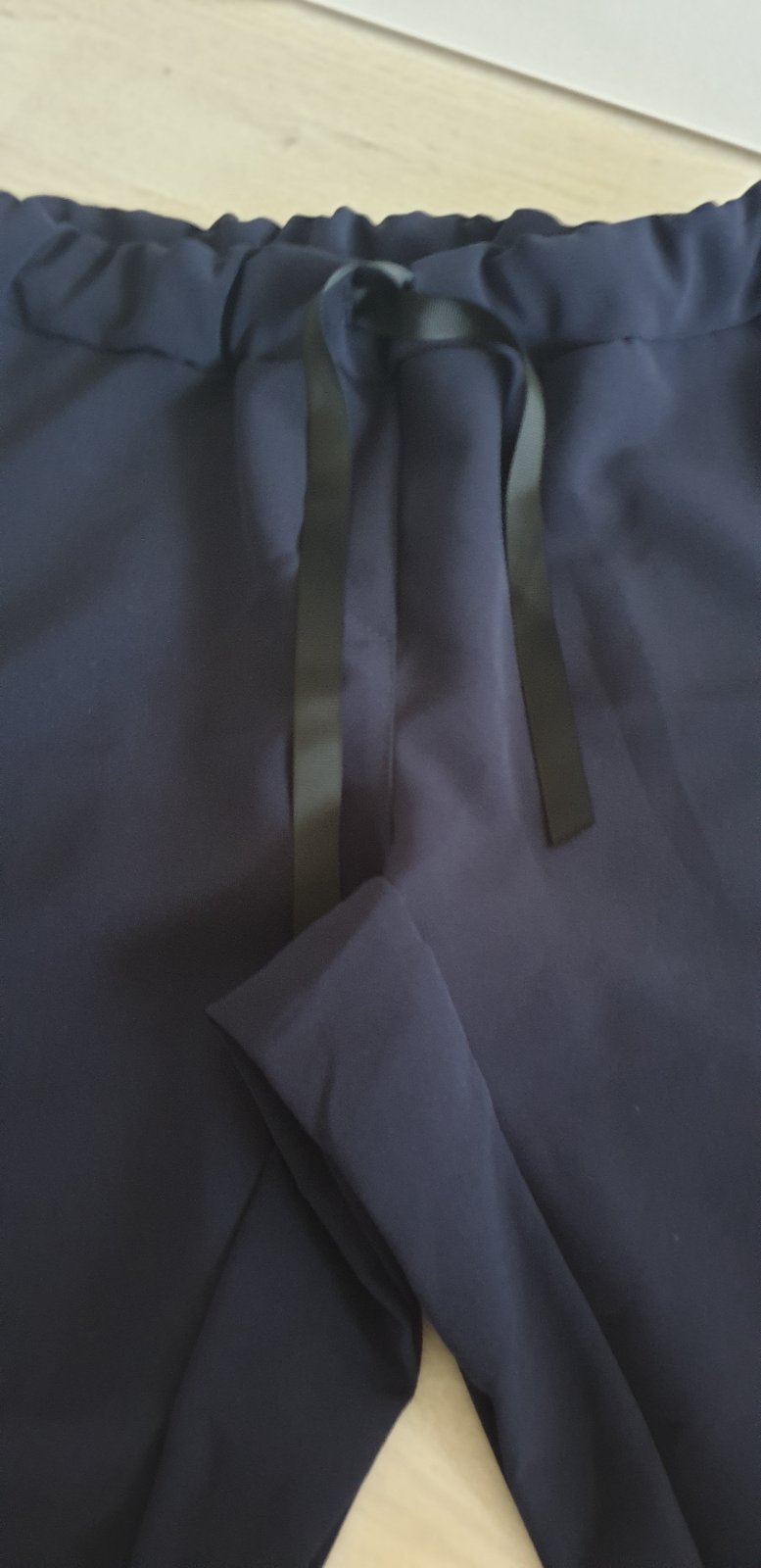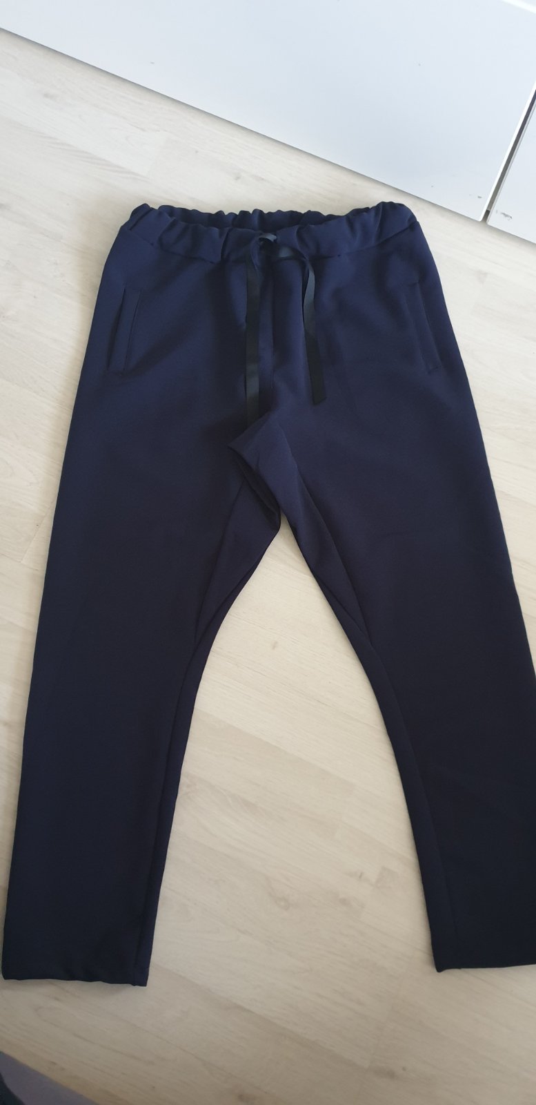 Veľmi málo nosené nohavice. V páse je guma + šnúrka na regulovanie. Materiál - látková sustakovina. Rovný strih