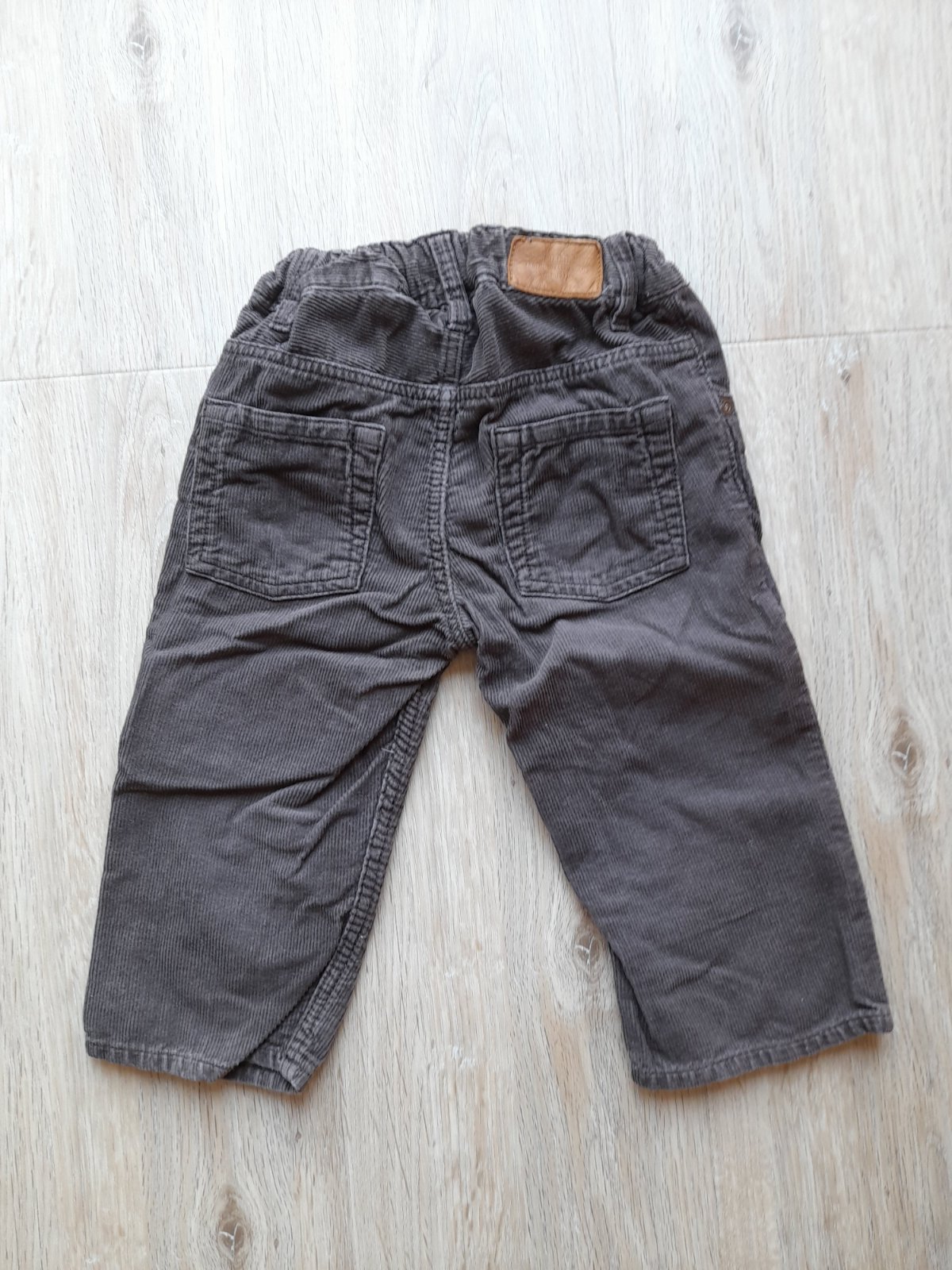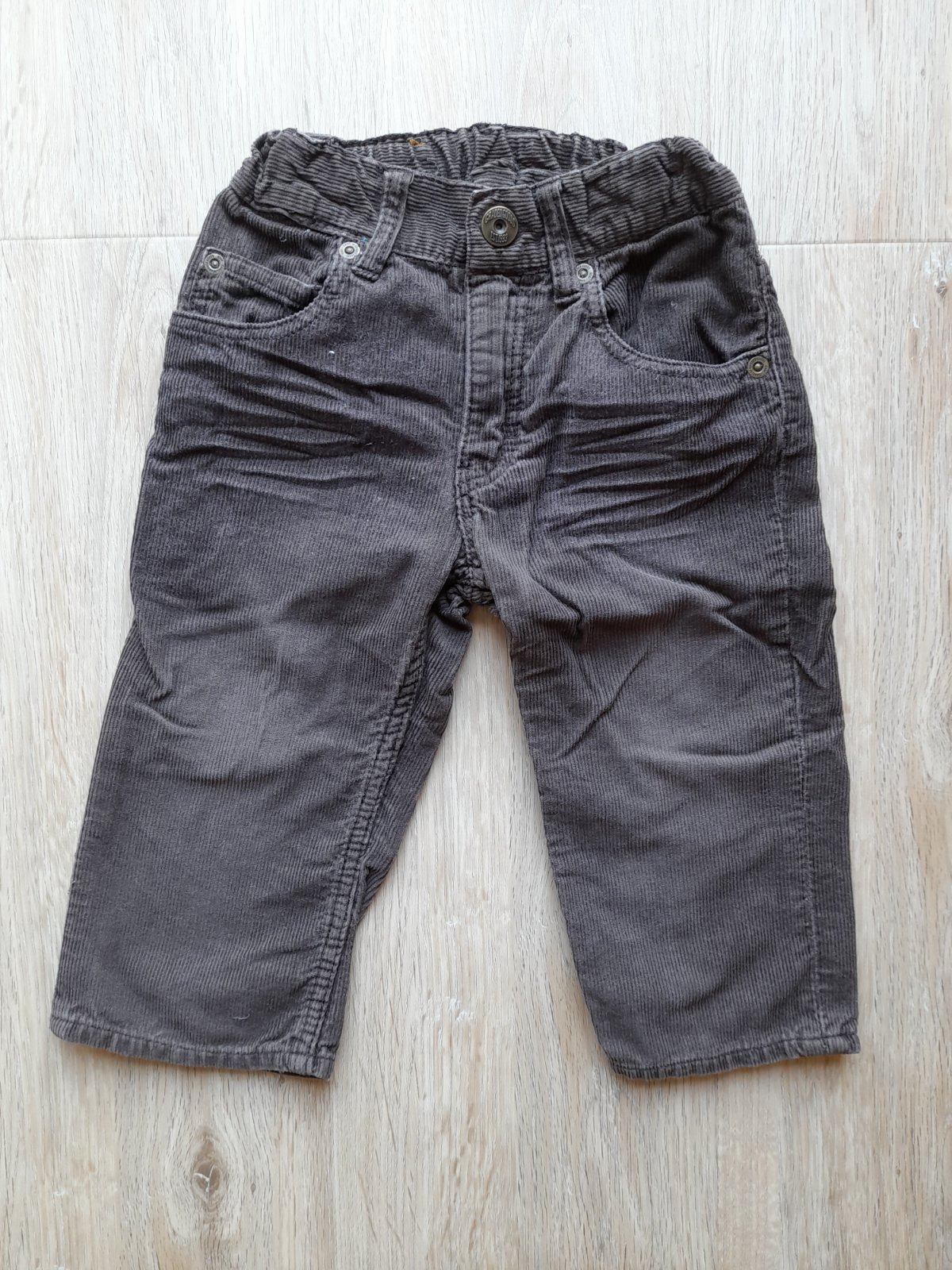 #107 Zapínanie na cvok a zips. Pás po bokoch nastaviteľný gumičkami. Začína byť vidieť nosenie na kolenách, inak bez vád. 100% bavlna.