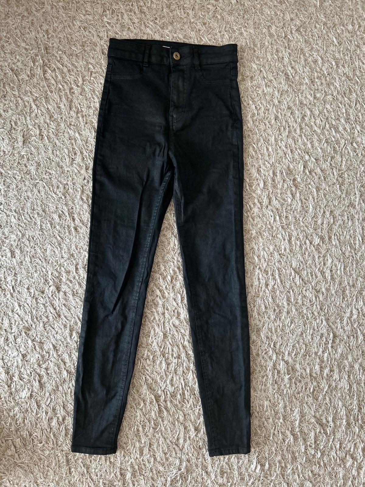 Čierne nohavice Zara, veľkosť xs, nosené, no vo veľmi dobrom stave, elastické, bez vád a chýb. Rozmery : dĺžka 89cm, pás 2x33cm, predný sed 21cm, zadný sed 29cm. + poštovné